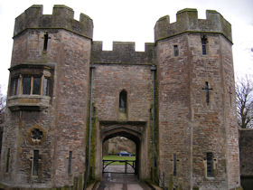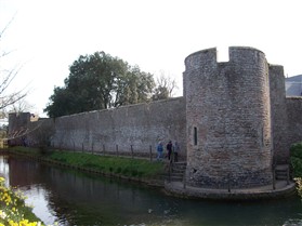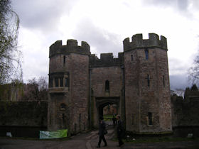 The gatehouse lies on the N side. The wall is boldly crenellated with some arrowslits. Part of the N side is incorporated in that part of the Bishop's Palace (qv) presently known as Bishop's House. The gatehouse in random rubble with Doulting stone dressings with lead flat roof behind crenellated parapets. EXTERIOR: 3 storeys, the gateway bay flanked by two rectangular towers with corners chamfered on north side. Towers have mostly arrowslits to ground and first floors, but east face of east tower has a 2-light mullioned window with square label (under which is the Swans' Bell), the N face has a circular cinquefoil window, and to the NE corner an angled oriel window at first floor level of 1+2+2+1 lights, with moulded base and reeded frieze to a lead flat roof. The centre gateway has a 4-centre arch in a rectangular recess with carved spandrels, part of the portcullis and the chains of the drawbridge (now connected to a modern fixed bridge) remain, arch has a pair of possibly C14 gates with an inserted wicket of c1600. Above this a single lancet with cusped window set deep inside. Inside the gateway is a quadripartite ribbed vault with short spring shafts, and carved head boss and corbels. In E wall of this space a small oriel window, presumably for the gatekeeper. Side doors in the projection of the towers south of the minor gate arch. INTERIOR: not inspected. The enclosing wall with its moat helps to provide what Pevsner (op cit) calls an "...exquisite beauty of setting...". (Listed Building Report)