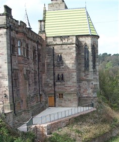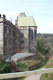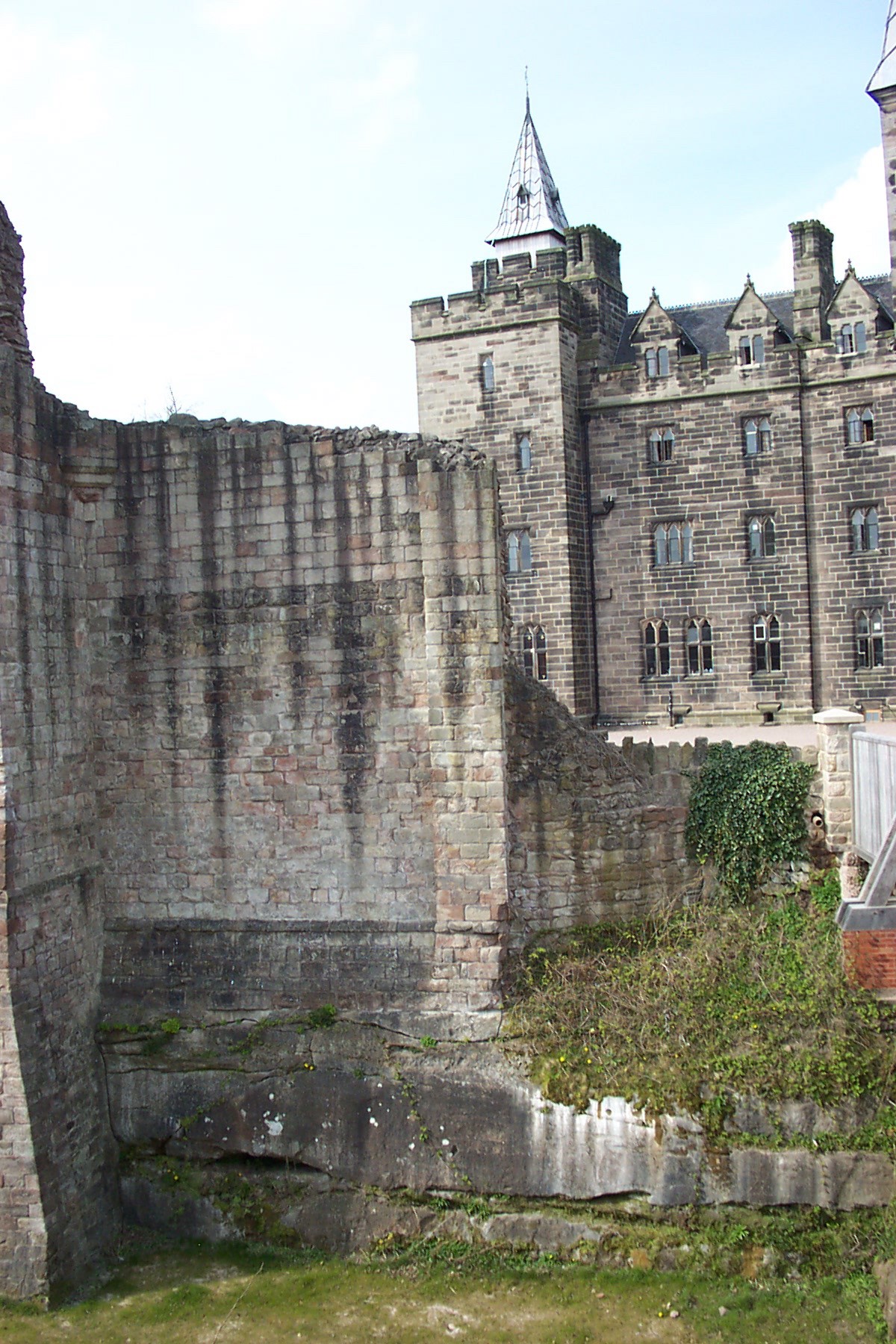 Castle was in existence here by 1176, some of remains are late C12 and there are additions of the first quarter of the C13. Ashlar with diagonal tooling and rubble core. The castle is situated on a hill overlooking the Churnet Valley. It was protected to the north by a precipitous cliff and to the south by a rock-cut ditch and curtain wall which enclosed an irregularly shaped site on an east-west axis; the gatehouse lay towards the west end of the south curtain and there were two wall towers towards the centre. The South Curtain: mainly late C12. The remains of the wall stretch from the south-east angle of St. John's Preparatory School to the western apex of the site being interrupted by the eastern wall tower; towards the east end of the curtain is a pilaster buttress, at the western apex immediately north of the gatehouse is the base of a square buttress or turret. The parapet has been destroyed but its height and position are to be discerned on the west side of the eastern wall tower (see below). The Eastern Wall Tower: late C12 and bonded into the curtain wall. Square open backed tower with a battered base and a string course at the ground level of the castle enclosure; a blind pointed arch springs from the string course and indicates the position of a barrel vaulted chamber entered from the enclosure; above this is a central arrow loop of circa 1190 with cross slit and fishtail shaped base, to the rear of the loop is a round arched embrasure; from the level of this loop upwards the corners of the tower are chamfered. The left hand side of the tower has a rectangular loop set high up immediately in front of the former south curtain parapet, the position of which is indicated by a break in the ashlar work. On the right hand side of the tower corbelling spans the angle between tower and curtain at parapet level. The Western Wall Tower: early C13. D-shaped. Foundations only. The tower was served by a newel staircase situated in its north-west angle