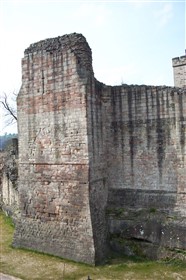 The Gatehouse: early C13. Twin D-shaped towers survive to a height of approximately 10ft, the eastern tower has a battered and offset plinth. Originally the towers flanked a dentral gate passage with a portcullis at its outer (southern) end, the lower part of a portcullis groove of square section survives on the east side of the passage. A mural staircase entered from a door on the west side of the passage gave access to the upper parts of the gatehouse (now destroyed). Below the level of the former gate passage and between the 2 towers is a sally-port with round arch, it gives access to a central corridor beneath the gate passage, at the north end of which a segmental-headed doorway to the west leads to the basement of the west tower and to a doorway in the north wall which probably communicated with the castle enclosure via a mural staircase. There is no indication as to how the basement of the east tower was entered, it may have been from a trap in the floor of the room above. A short length of wall extends from the front of the western tower and probably terminated the rock-cut ditch to the west and flanked one side of the former approach road.(Listed Building Report)