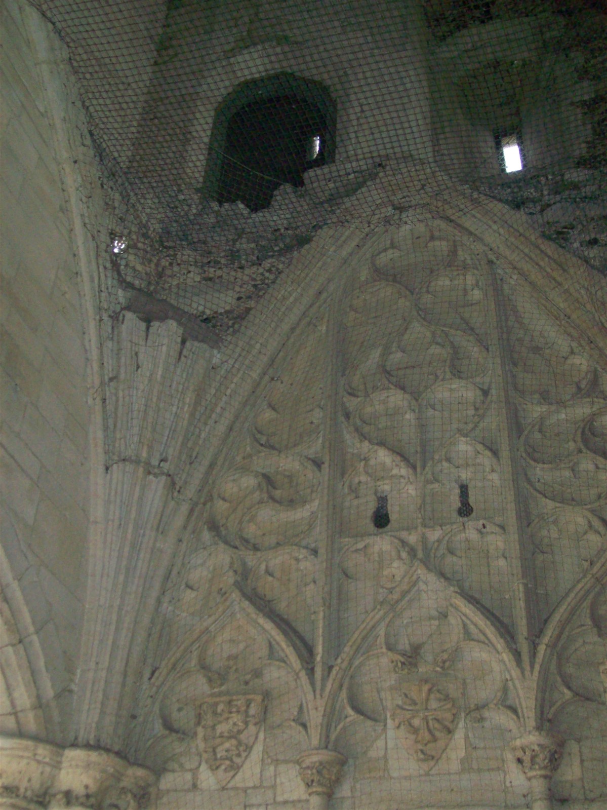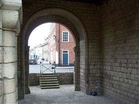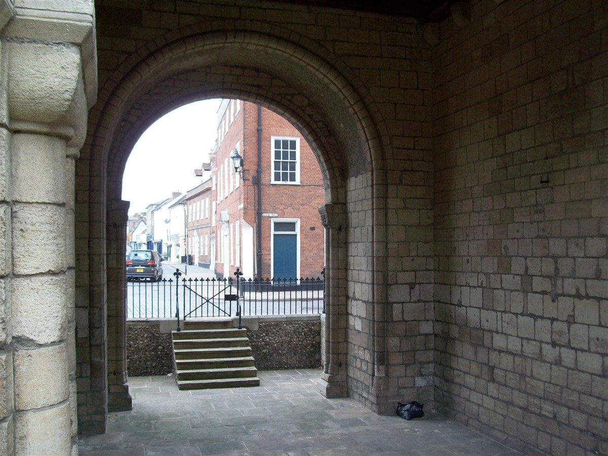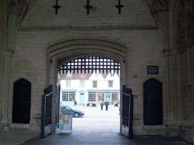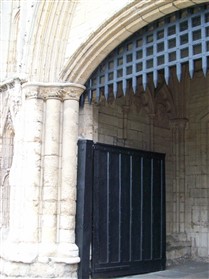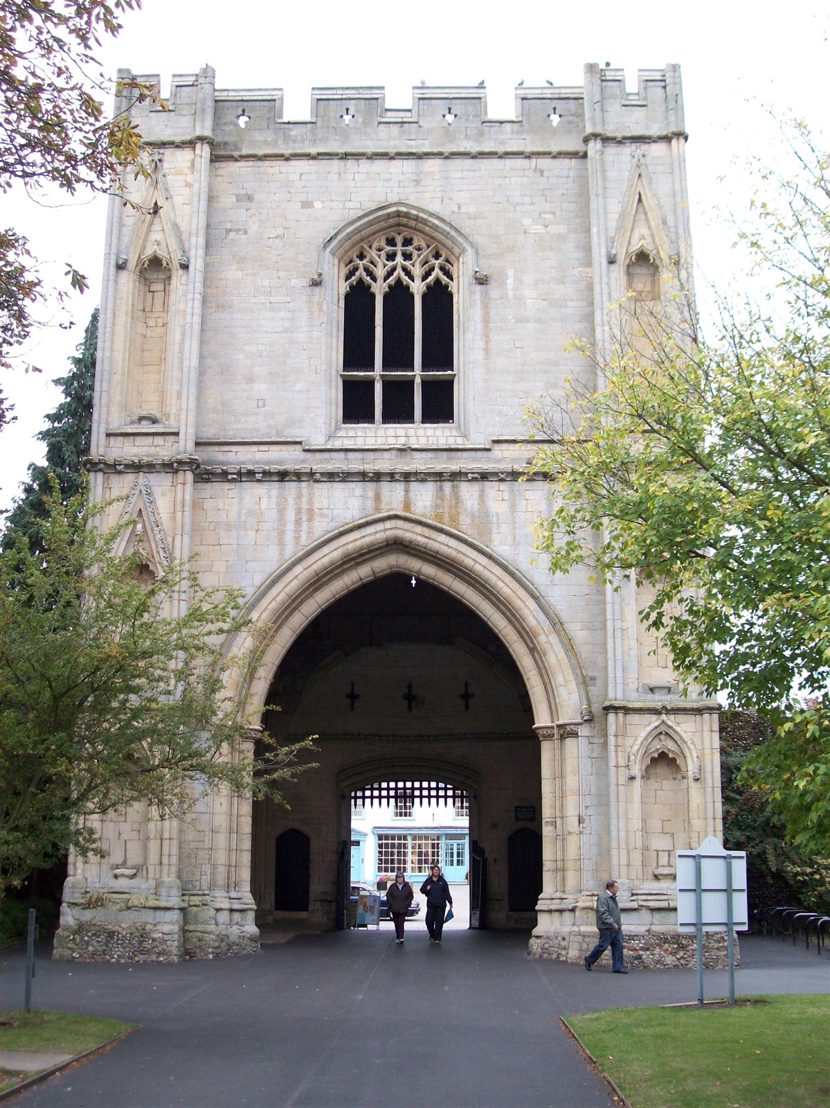 C14 Great Gate and C12 St James Gate of abbey precinct survive but although impressive probably never meant to be defensive. The Abbey was surrounded by a precinct wall, and some slight sections of the precinct wall do survive. The great gate of the Abbey of St Edmund was begun after the riots of 1327 but before 1346; completed after 1353. Built of Barnack stone. Much is made of the defensive features of this tower, but cannot have been seriously defensive since the rest of precinct not really defensible. The rioters of 1327 deliberately directed their attack at the gatehouse of the Abbey. They could have easily have broken the precinct wall but the Gatehouse was probably the place where the Abbey took rents and possibly where deeds and other legal documents relating to property were housed.