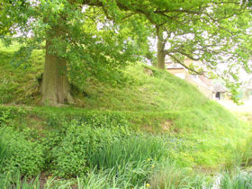 The motte at Abinger is of especial importance as the site of the first modern-style excavation of such a monument and hence it formed an important stage in the evolution of thought on the origin and use of these mounds. Waterlogging in the base of the ditch holds high potential for the survival of normally-perishable organic remains such as timber. The monument has been laid out to be easily understood and is excellently maintained. It is therefore of high amenity value. The monument, a motte castle of the early Norman period dating to around 1100-1150AD, is adjacent to the later Manor House. It includes not only the prominent earthen mound but also the partially-excavated moat which surrounds it and, to the north and west of the mound, a low outer bank of earth. The flat-topped mound measures some 30m in diameter at its base and stands to a height of nearly 4m above the level of the surrounding land. The mound was originally surrounded by a substantial moat which provided defensive strength as well as the earth for the motte itself. This moat was deliberately infilled in antiquity and is now only visible in two areas. To the south-east, where it was excavated in 1949, it features a natural step left unquarried by the moat diggers to provide sound footings for an access bridge. To the north-west of the mound the position of the moat is marked by a pond considered likely to have been dug into the upper part of the moat relatively recently. Only on the north-east side does an outer bank to the moat survive, this bordering the footpath. The excavations demonstrated that a timber look-out tower, surrounded by a palisade fence, had stood on the mound during the first half of the 12th century. The postholes of both were marked with concrete once dug. (Scheduling Report)