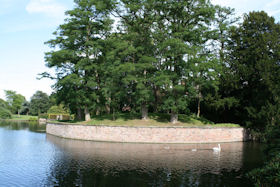 Medieval motte and bailey in Dunham Park. It was held by Hamo de Masci against Henry II in 1173. Surviving features include a moat and mount at the north-west corner of Dunham Massey Hall. The mount survives to a height of 2m and has a diameter of 24m. Has been altered for use as a prospect mound. The moat has been flooded as an ornamental lake; the Hall probably occupies the bailey. (PastScape)