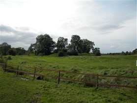 The perimeter of the field containing the site is marked by a bank and external ditch which appears to be a flood barrier - whether it is contemporary with the main works is difficult to say (Field Investigators Comments–F1 BHS 2-OCT-67). (PastScape)