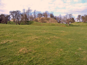 This really is a very good example of a motte and bailey. Hopefully the trees on the earthworks will not be allowed to become too dense and obscure this fine site.