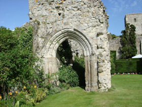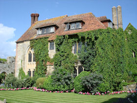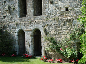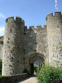 In the centre of the north wall is a small rectangular projection, which was used for garderobes, and to the east of this a large rectangular projection which was the kitchen. In the centre of the south wall are 2 semi-circular towers 58 ft high flanking the gateway with castellated parapets over them. The gateway comprises a four-centred carriage arch with chamfered jambs and a portcullis groove. On the inner side buttresses flank the arch. Above is a room with a castellated parapet over it. Outside the south gate and walls of the Castle is a dry moat which never had a draw-bridge. The south walls have no ws. except loop ws. in the towers flanking the gate. In the north wall are cross-shaped loop ws. and 2 pointed ws. of 2 trefoil-headed lights each; also doorways, fireplaces and in some places remains of the crenellation with a parapet walk behind it. To the south of the projecting kitchen are remains of William Rede's Great Ball with 4 pointed archways. In the north-west corner are the remains of the angle tower of 3 s. The occupied parts of the Castle have been much adapted by Bishop Sherburn in the C16 and at various dates since including the present century. They are partly of stone and partly of timber-framing with some of the surface plastered. Tiled roof. Casement ws. To the east of the gateway is a range of 2 s. and 3 ws. with 2 gables, which is a cottage, and beyond this a modern portion on the possible site of the Chapel. The exterior of the main portion of the house which projects to the north-west from the south-east corner has been modernised in 1927 and has this date on the rwh. The interior of the room known as the Queen's Room contains paintings of Cassandra and Tomyris and other figures, dating from Bishop Sherburn's time, which have been attributed to Lambert Bernardi or Theodore Bernardi of Amsterdam, who came to England in 1519 and is also said to have executed 2 large paintings for Chichester Cathedral. The main staircase dates from the mid C17. The uninhabited portions are scheduled as an Ancient Monument. The last Bishop of Chichester to occupy the building was Bishop Sherburn (1508-1536) who also carried out a good many alterations and adaptations. After Bishop Sherburn's time the Castle was let. In 1643 it was dismantled by General Waller on account of the Royalist sympathies of the then tenant. (Listed Building Report)