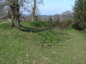 A depression abutting the N.E.bank is described by the O.S. as a moat but is probably a dry fishpond.