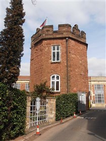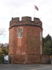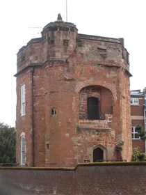 Late C15 or early C16. Octagonal tower of 2 storeys with cellarage. Local sandstone, with moulded cornices and embattled parapet. One C18 window to each storey, but several original small lights remain in the staircase turret. The lower ground floor room has 16 radial ribs, alternately single chamfered and single hollow chamfered. Apparently a fragment of a small castle or fortified manor house, occupied in the C17 by Sir Ralph Clare, 1st High Steward of Kidderminster. (Listed Building Report)