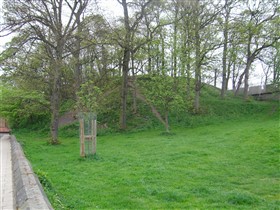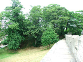 A Motte and bailey built 1068-9 by William the Conqueror and rebuilt in 1069. Disused by 1322 at which time it was incorporated into the town defences. Originally it consisted of a circular mound, surrounded by a ditch, with a quadrangular yard of 3 acres on the south west side. Excavations have revealed the remains of 12th century buildings on the top of the Motte. The Motte survives to an average height of 7.7 metres and was raised in height in the Civil War. (PastScape)