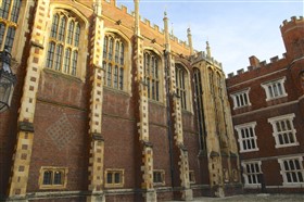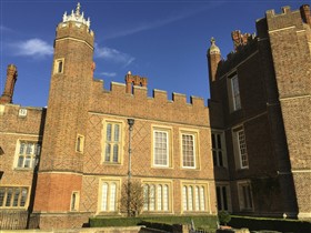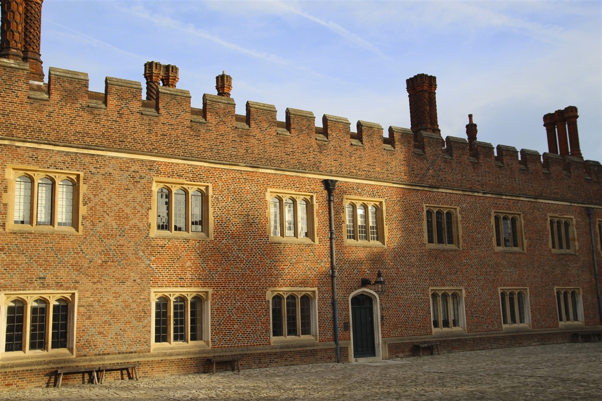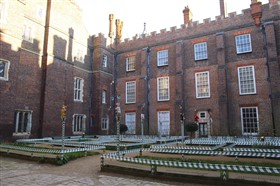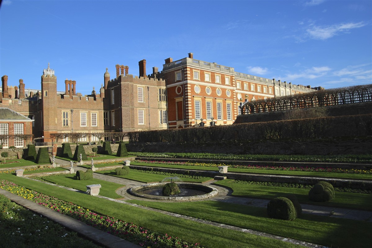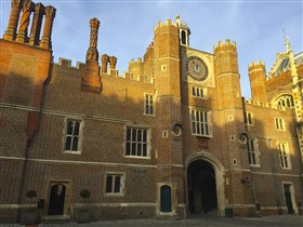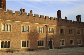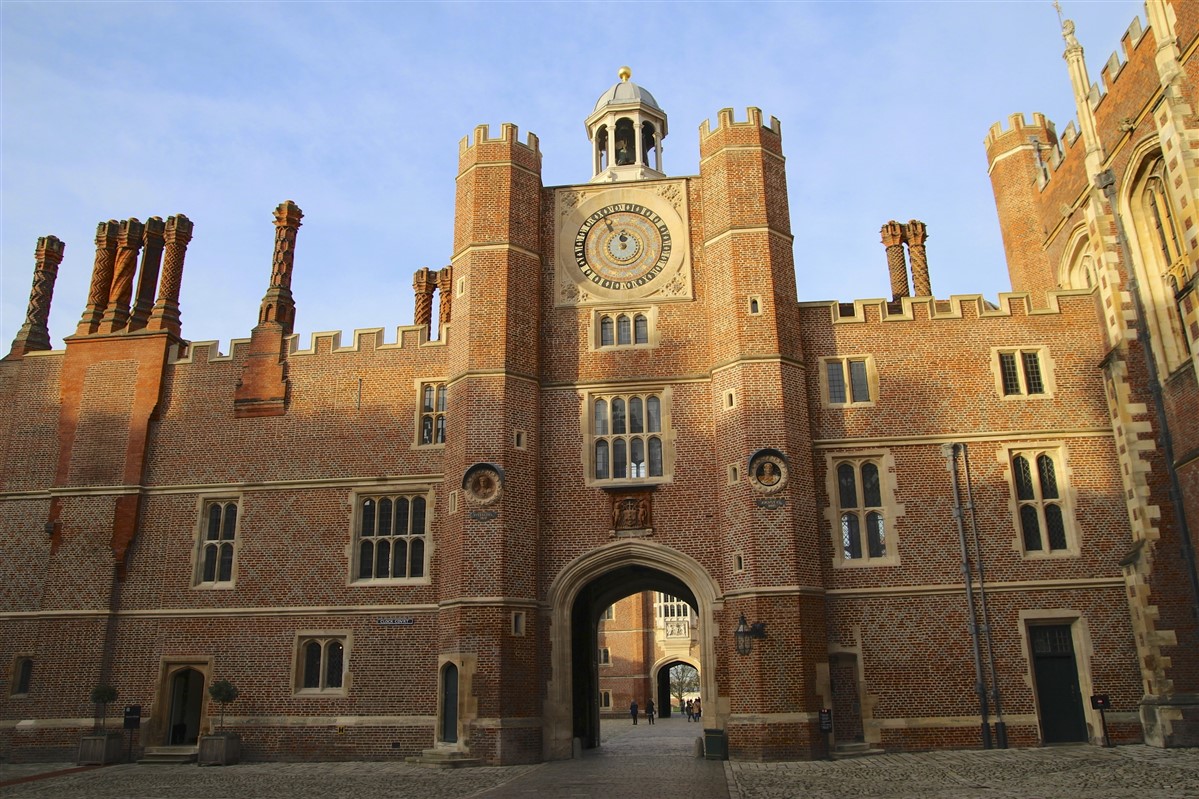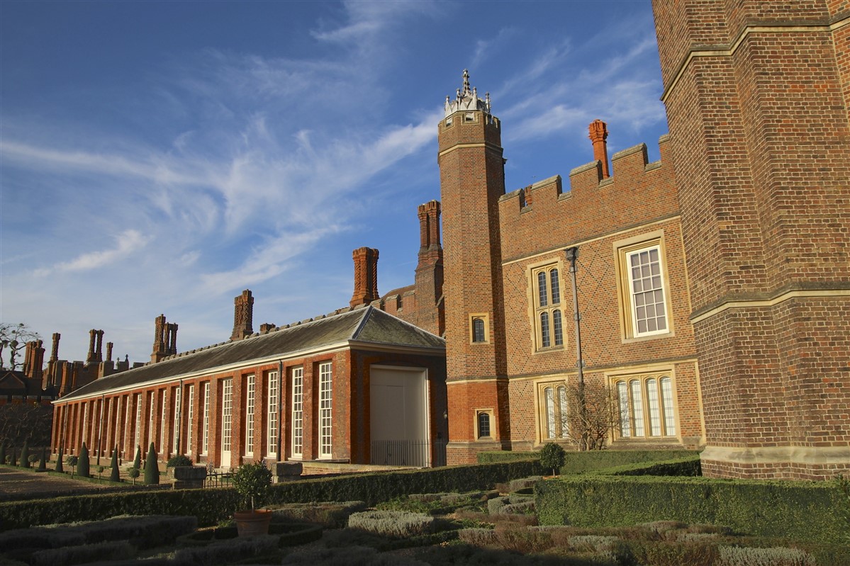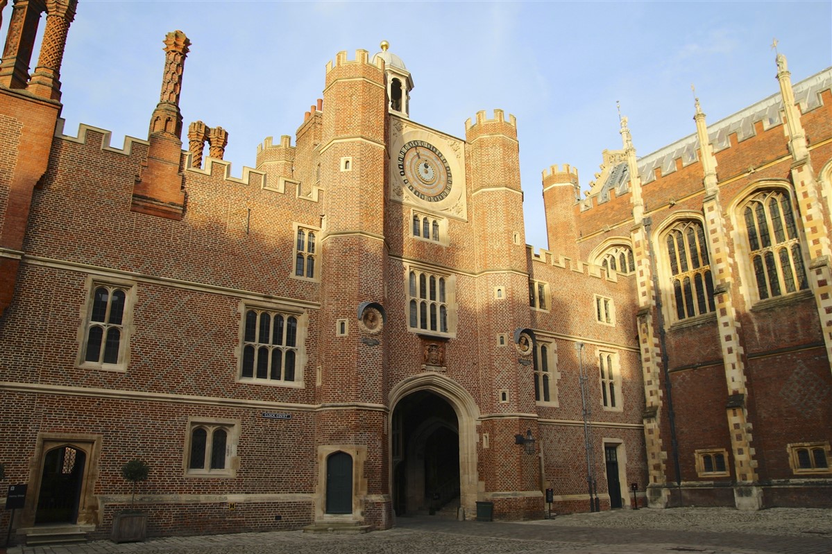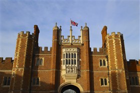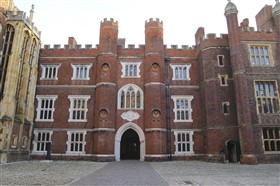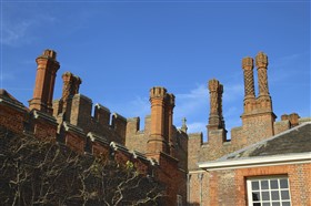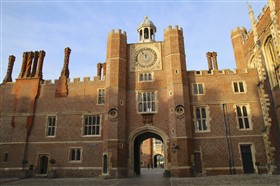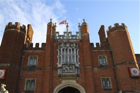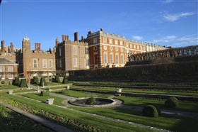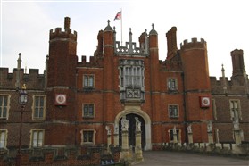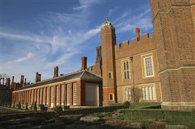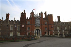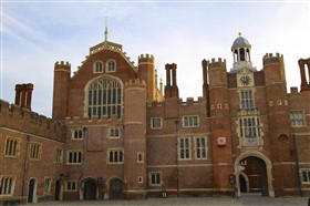 The Royal Palace of Hampton Court was originally built as the residence of Cardinal Wolsey in 1514. The site was first owned by The Knights Hospitallers of St John Jerusalem in 1236 who built a grange. In 1494 the lands were leased to the royal courtier Giles Daubeney who built a private house. This house was transformed in 1514 by Wolsey into a grand palace and his official residence. However after his downfall the palace was acquired by Henry VIII in 1529. Between 1529 and 1540 Henry VIII made extensive alterations to the palace including rebuilding the great hall, remodelling the chapel and building the chapel court, adding side wings to the west façade and extending the kitchens. He also built tennis courts, a bowling alley and a tiltyard. The privy kitchens were added by Queen Elizabeth I, but it was not until the reign of William III in 1689 when a large scale rebuilding programme was carried out (1689-94). Following designs by Christopher Wren the Fountain Court (replacing the earlier Tudor Cloister Court), the Green Court and the Colonnade in Clock Court were all built. Various alterations were carried out in the early 18th century including the redecoration of the old Tudor range between the Clock and Fountain Court and the completion of the King's and Queen's Apartments with the redecoration of the Queen's Staircase. Hampton Court and its gardens are open to the public and it remains one of the most iconic buildings of the Tudor period. (PastScape)