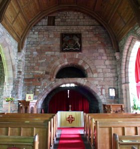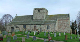 South porch has elliptical arch with key and panel bearing Lowther arms to gable; inner entrance is round-headed, of 3 orders. The church occupies a site on a mound with a circular churchyard which suggests earlier origins. (Lake District HER)