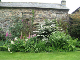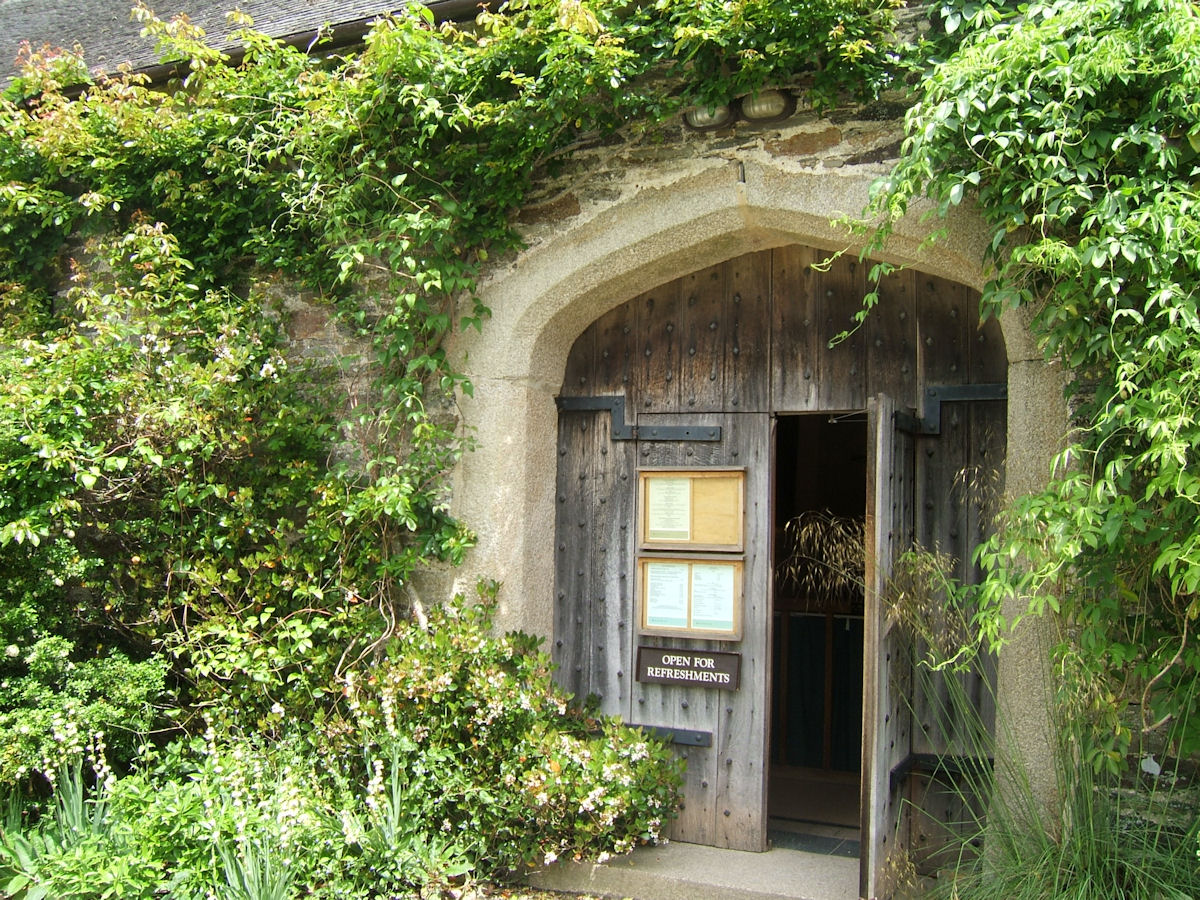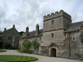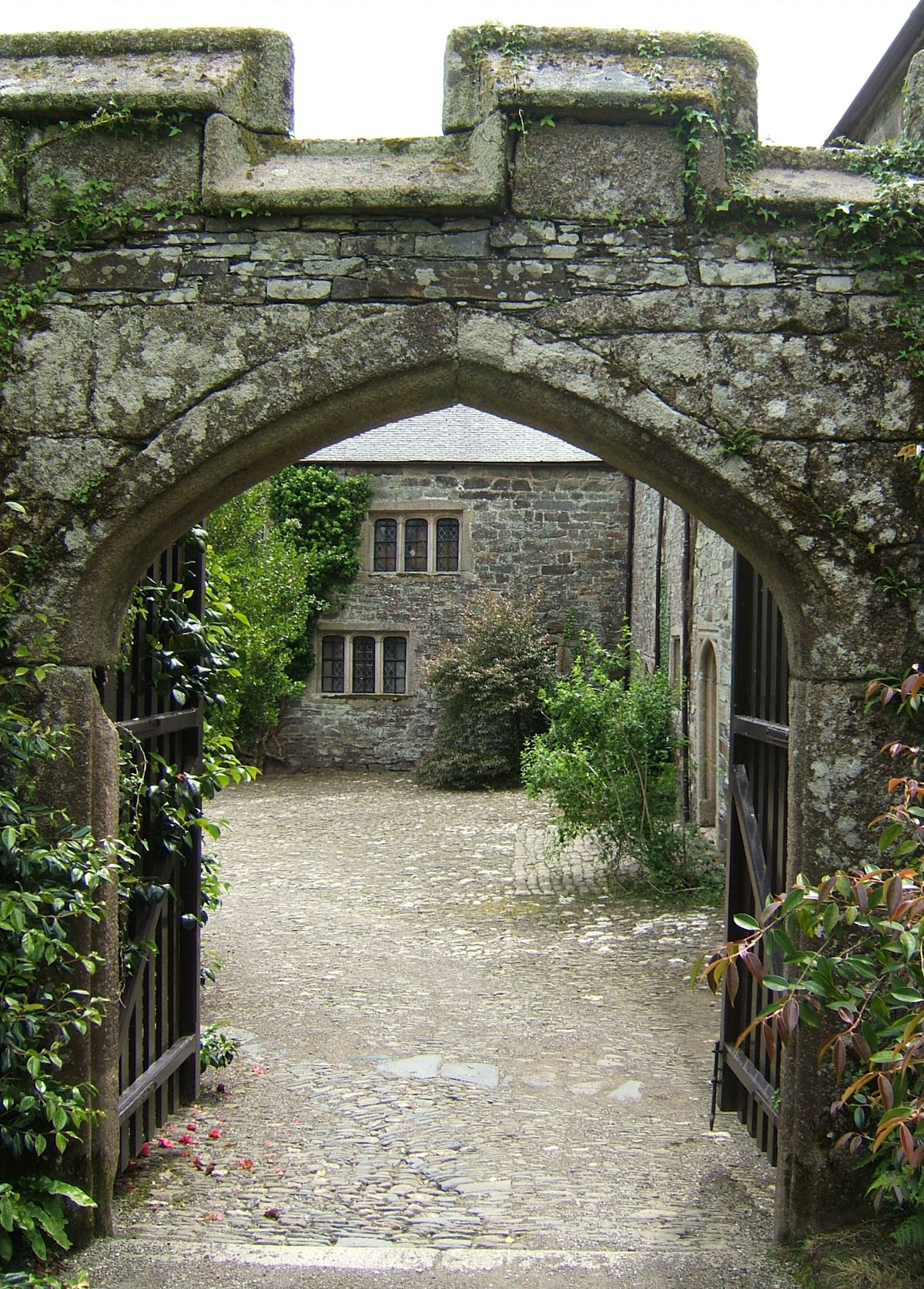 The original plan of the house is unclear but seems to be a fortified manor house with crenellated gatehouse. The gun port is an unusual feature but not unique. Much of the building was done by Sir Piers Edgcumbe, who had fought with Henry VII at Bosworth.