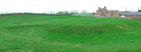 Clearly Leland did not believe this to have actually been a castle. There are two (and were three) very similar ring banks in the area described by Leland. The one know called Mayburgh Henge, at NY51922842, is on a slight knoll and is slightly larger and may have been what Leland was referring too. However the henge now known as King Arthur's Round Table, although on lower ground is better preserved and somewhat more visually impressive on close examination and is generally assumed to be the site Leland was describing (He may have been considering all three ring banks as one site). In Leland's time the area may have been more marshy and Mayburgh, in particular, may, at times of flood, have been effectively an island.