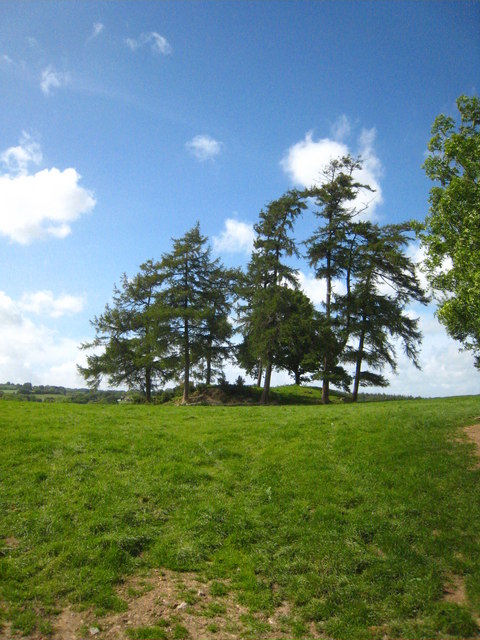 The field in which the mound stands is now called Castle Park, but reference to the Lamerton Tithe Map of 1840 shows the field oddly sub-divided. A semi-circular field, about 90m. across, encloses the mound and an area 70m. by 30 m. which is banded off and described as 'waste'. The field is called Great Castle. Immediately to the N.E. is a small plot called Little Castle. Castle Park is to the S.W. of Great Castle and separated from it by two curvilinear and parallel hedges about 3m. apart through which an ungated track or path runs to give access to a large and steep field over-looking the Tamar. The E. boundary of Great Castle exists today as a hedgebank of earth and shillet 1.7m. high and up to 2.0m. thick, forming the outer edge of a parallel curved platform, between 2m. and 3m. wide and 0.5m. high. At the northern end a faint rise in the pasture field suggests that the platform once curved sharply westwards towards the mound. The hedgebank at this point angles to the N.N.E. and is narrower than previously, where the impression is that it was cut back from a larger pre-existing structure and given some stone-facing or revetting. There are no vestiges of a ditch in the arable field on the outer face of the bank. Corresponding very approximately to the former western boundary of Great Castle, a ditch, about 13m. wide and 0.2m. deep, can be traced for 45m., the inner face appearing to curve towards the mound at the northern end. The field names evidently perpetuate the tradition of some form of fortification and it seems probable that the mound represents a motte with the possibility of a small bailey. The entrance would presumably have been on the S. side adjacent to the ridgeway road. Strategically it is well placed, occupying the entire width of the ridgetop at this point except for the route it controlled. The lack of any documentary supporting evidence save the field names may indicate a minor fortification of brief duration as might occur during the period of the Anarchy. Mound; fir planted, but condition fair; possible bailey earthworks so ploughed down or destroyed as to be only just perceptible. No finds were made. Surveyed at 1/1250 & 1/2500. 'Lamerhooe' is a 19th century variation of 'Lamerow' which name occurs on the 1st Edn. 1", 1809. (PastScape–ref. Field Investigators Comments F2 MJF 12-NOV-83)