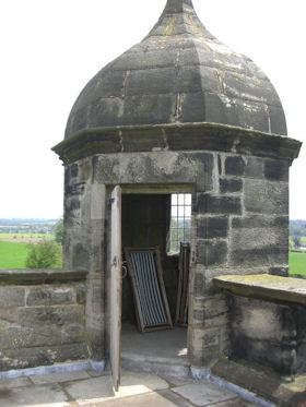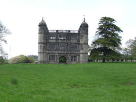 Built circa 1575 and a very stylish specimen of Elizabethan design. Ashlar faced and retangular with octagonal ogee-domed turrets at the angles and central. archway. 3 storeys, each decorated with an Order of columns: Doric, Ionic and Corinthian, Balustraded parapet. The interior is gutted and the roof almost gone. Mullioned and transomed windows. (Listed Building Report)