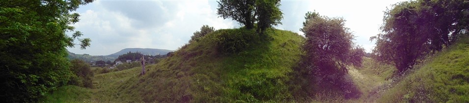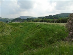 One Bailey is located to the SW of the Motte and measures approximately 120m by 20m, the second is located to the SE and measures 60m by 10m. Both Baileys are surrounded by a deep ditch with an outer encircling bank. The original Builth Castle was built around 1100 by Philip de Breos and would have comprised a Motte and Bailey with a wooden keep and timber fortifications. The first stone castle was built around1240 but was destroyed by the Welsh in the 1260s. The castle subsequently became on the ten key castles built in Wales by Edward I, with work starting in 1277. A substantial stone fortification was built on and around the orignal Motte and Bailey, including a shell keep, a stone curtain wall with six towers, a defended drawbridge and a stone outer wall. The works were never completed and much of the stone structure was removed in the 16th century to build a house on the site of the modern White House. Nothing of the stone fortification is visible on the site today. (Scheduling Report)