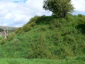 The monument comprises the remains of a motte and bailey castle, a military stronghold built during the medieval period. A motte and bailey castle comprises a large conical or pyramidal mound of soil or stone (the motte) surrounded by, or adjacent to, one or more embanked enclosures (the bailey). The site comprises a large, steep sided Motte, standing 18m high above the ditch with a summit 18.5m in diameter, and two Baileys