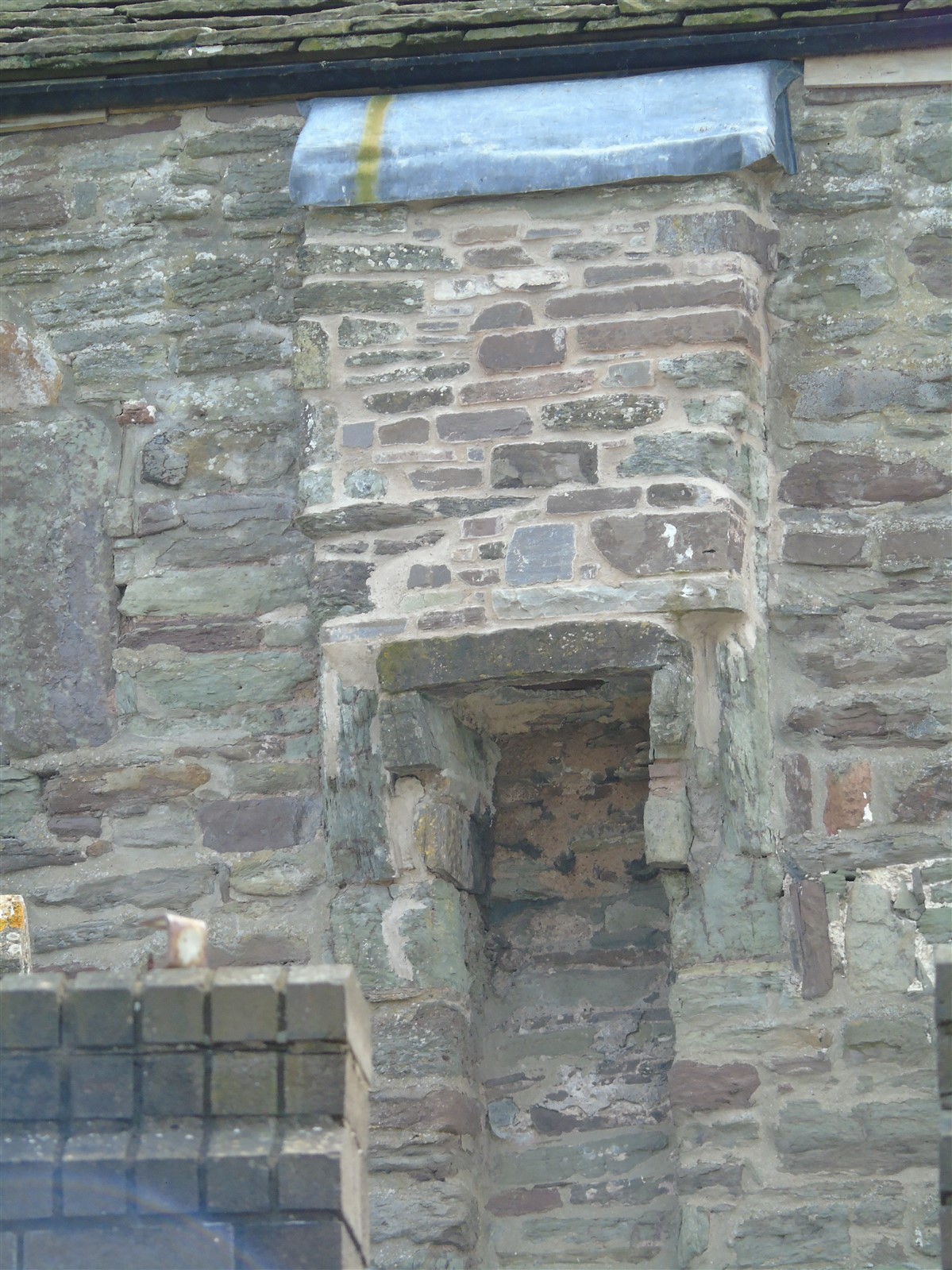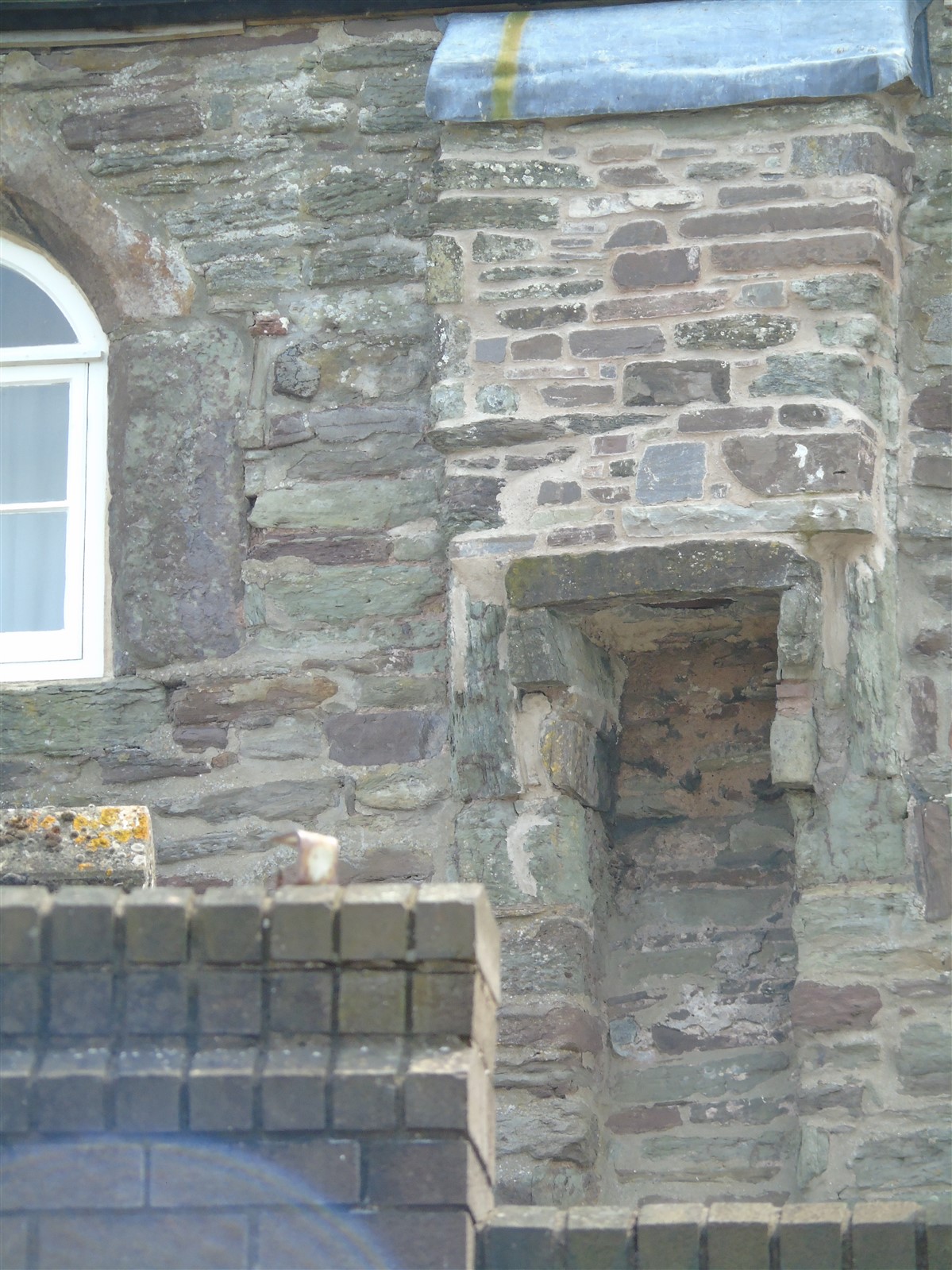 The tower has a fireplace in the SW wall obscured by a C19 carved Jacobean style surround, and in the SE corner, a lobby at the foot of the stair rising in the SE wall thickness is lit by a small window. The stairs are covered with stepped stone slabs, and, facing at the top a garderobe in the NW wall, with a low wall cupboard adjacent. The first floor has two off-centre opposing half-round corbels for a former floor beam. The fireplace is obscured. A second wall stair commences from the window embrasure on the SE wall leading to the top floor with a high ceiling, and opposite the opening The stair continues up to the former parapet walk. On this floor the wall fireplace has a megalithic lintel, 0.7m thick, and there is a second window on the NW side with access from the reveal to another garderobe. Roof structure replaced late C20. The cellar, also accessed by wall stairs, has the remains of a stone built oven on the SW wall, and an opening to the C19 kitchen in the SW extension. It is said locally to have underground passages to Talgarth Church, to Bronllys Castle and, more ambitiously, to Cardiff.