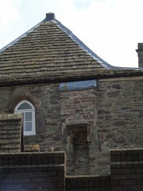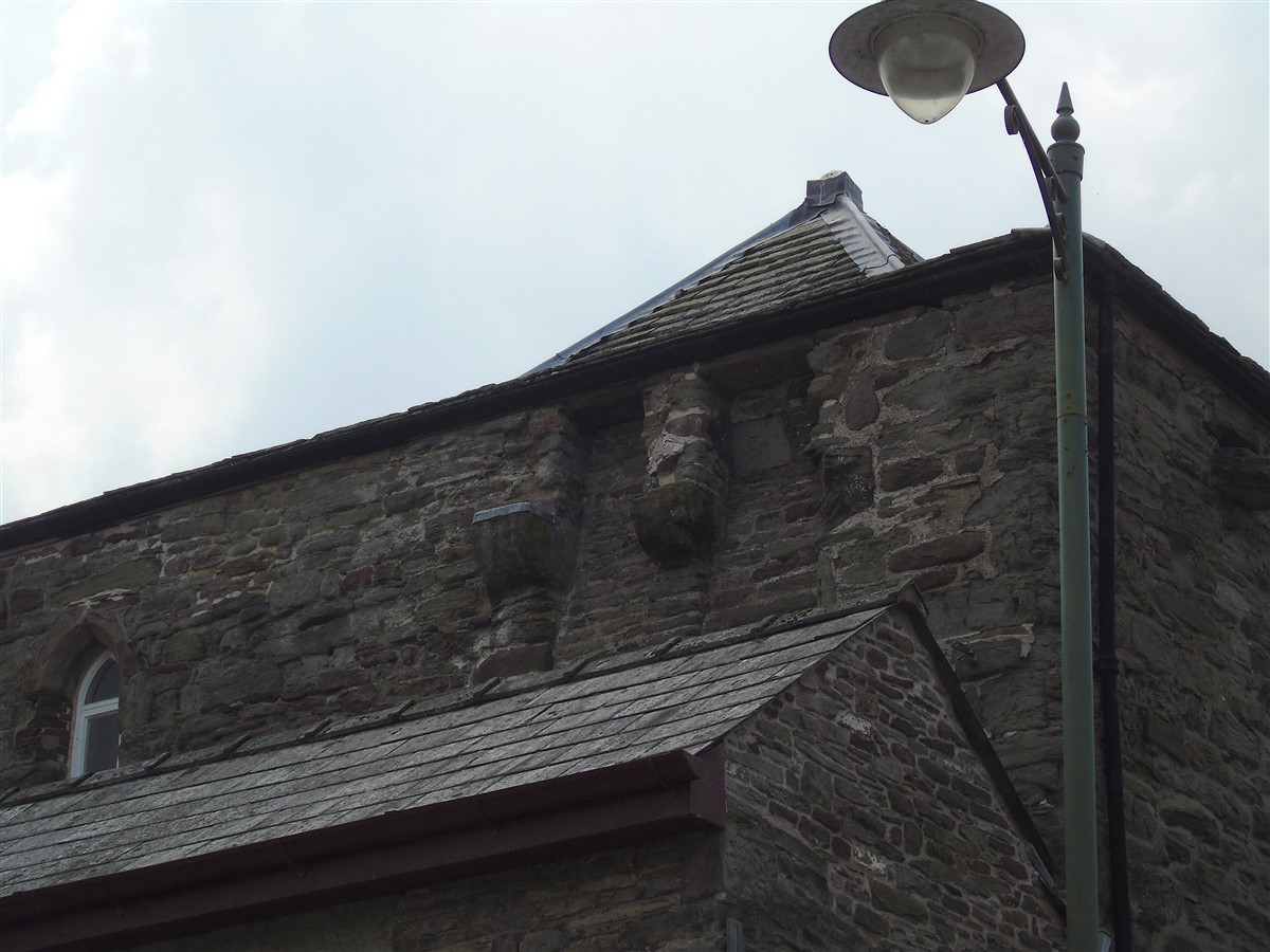 Square stone tower. One room on each of 3 floors and basement. Pyramidal roof of low pitch. Surviving gargoyle on back elevation. This structure, set beside bridge (Nprn23763) at centre of Talgarth (Nprn401895), can be interpreted as a 14th century, or later strong tower subsequently incorporated into modern house. (Coflein)
