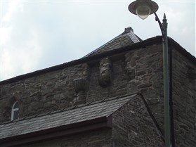 Located at the corner of the Square, at the side of the A479, adjoining the bridge over the River Enig.