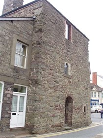 Usually described as C14 but Remfry suggests early C13 and Armitage writes C13 and standing on a small motte (No other author supports this suggestion of a motte). The town directly overlook the bridge into the town, Soulsby states 'It was intended to guard the river crossing, and when this function was no longer required it housed the borough prison' Originally a borough, as opposed to private, building and whilst it may have had a defensive function probably operated more as a toll house and strong house for the boroughs money and documents.