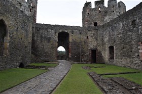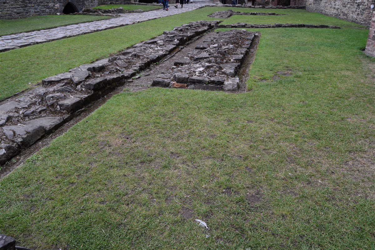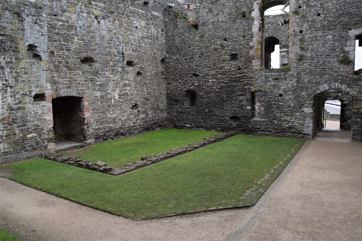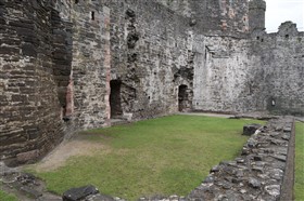 The outer ward housed the great hall, kitchens, stables and prison while the inner ward provided private apartments for the King as well as a chapel. Both inner and outer ward could be entered independently via the west and east barbicans. The east barbican is thought to have been used as a garden. (Gwynedd Archaeological Trust HER)