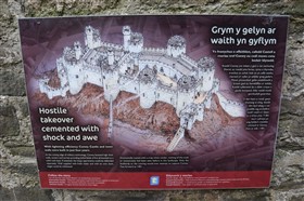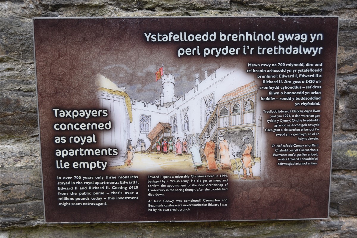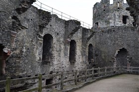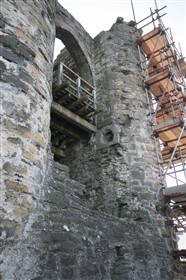 Conwy Castle was begun in 1283 following the successful conquest of Snowdonia by the armies of Edward I of England. It was one of a defensive ring of castles erected around the North Wales coast from Aberystwyth to Flint, and in addition protected a walled town that was the largest of the medieval boroughs of North Wales. Work began with digging the rock-cut ditches, under the direction of Richard of Chester, master engineer. The design of the castle and supervision of building was under the control of James of St George, Master of the King's Works in Wales and the foremost secular architect of his age. Other subordinate master craftsmen included Henry of Oxford and Laurence of Canterbury, both master carpenters, and John Francis who, like James of St George, was from Savoy. The castle and town wall were substantially complete by 1287. Modifications were made to the buildings in 1346-7 by Henry de Snelleston, mason to Edward, Prince of Wales (the Black Prince). This included replacing original roof trusses and strengthening the roofs by adding masonry arches. By the end of the C15 its military importance was diminishing and the castle slowly decayed. It was described as in poor condition in 1627, and in 1631 it was sold to Charles I's secretary of state, who assumed the title Viscount Conway of Conway Castle. During the Civil War the castle was repaired and fortified for the Royalists under the leadership of John Williams, exiled archbishop of York and a native of Conwy. The castle surrendered in 1646 and in 1655 the castle was 'disabled' by blowing up a portion of the bakehouse tower, making a substantial breach. The castle was restored to the Conway family after the Restoration, when some of the buildings, and the lead roofs, were taken down. Ownership passed to the Seymour family until, in 1865, it was given to the town. During this period there was some restoration and the bakehouse tower was rebuilt by the LNWR, whose railway line passed the foot of the castle. Since 1953, when more substantial conservation work began, the castle has been a guardianship monument in the care of the state.
