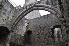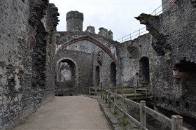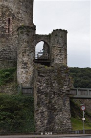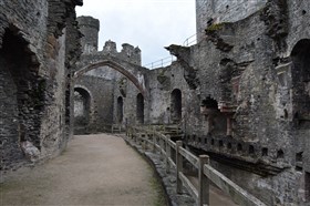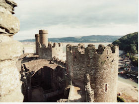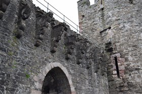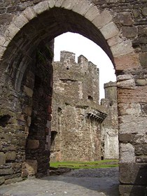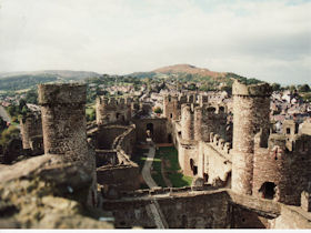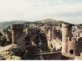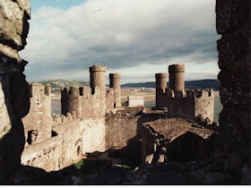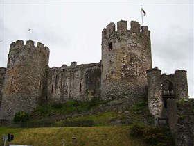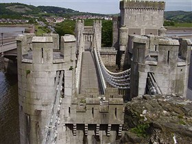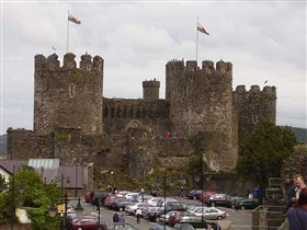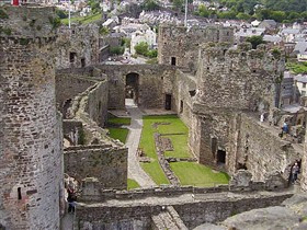 Built for King Edward I between 1283-87, Master James of St George's design at Conwy remains one of the most outstanding achievements of medieval military architecture. The distinctive elongated shape, with its two barbicans, eight massive towers and great bow-shaped hall, was dictated by the narrow rocky outcrop on which the castle stands. World Heritage Site 374