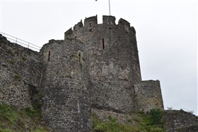 Conwy Castle, set against the mountains of Snowdonia is as impressive today as it was 700 years ago. Construction of the castle was finished in 1287, having taken a little over four years to complete. The town and castle of Conwy were built as a single entity. Conwy castle was one of a series of castles established in north Wales by King Edward I to secure North Wales following the death of Llywelyn ap Gruffudd in 1282. In 1283, the castle was raised in one main building phase and was adapted to the restricted space of the rocky outcrop at which it stands. The castle was designed as two adjoining wards that could be defended separately, with eight lofty towers. Four of the towers were designed to carry turrets and surrounded the inner ward which housed the royal apartments. These medieval chambers are still in excellent condition today and remain largely unaltered from their thirteenth century form. By 1332, the castle was deemed unfit to accommodate the King and as a consequence major repair works were put in place by 1347 with a remodelled great hall range and royal apartments. King Richard II later took refuge in the castle in 1399 and in 1401 the castle was captured by supporters of Owain Glyndwr. Conway again saw military action during the Civil War and Archbishop John Williams held the castle for King Charles I. The castle and town walls remained virtually intact and from the eighteenth century began to attract the interests of topographical artists such as Paul Sanby. The constructions of Thomas Telford’s road bridge and the Chester to Holyhead railway in the nineteenth century lead to an increasing number of visitors to Conway and a greater impetus to preserve and restore the castle and town walls. (Coflein Ref.– Taylor, A. 2003. Conway Castle: CADW)