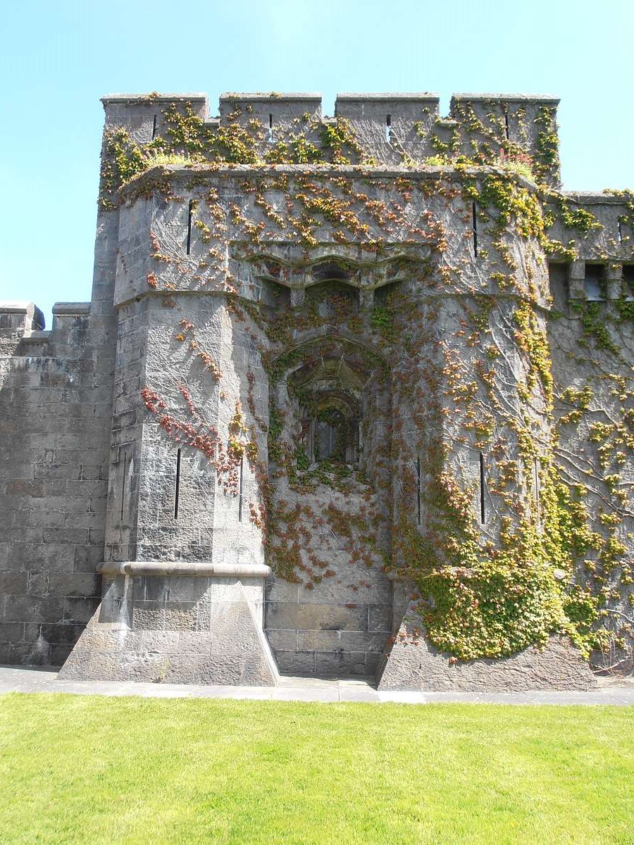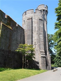 The stair turret still survives and has been continued up to a great height by Hopper. There are no visible remains of Wyatt's house; his drawings show rather dull facades but on the entrance front he balanced the medieval turret by a dummy one which was in turn treated by Hopper as a buttress-like feature. (RCAHMW 1964)