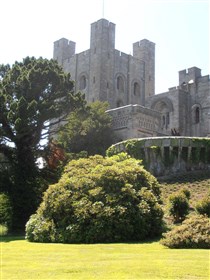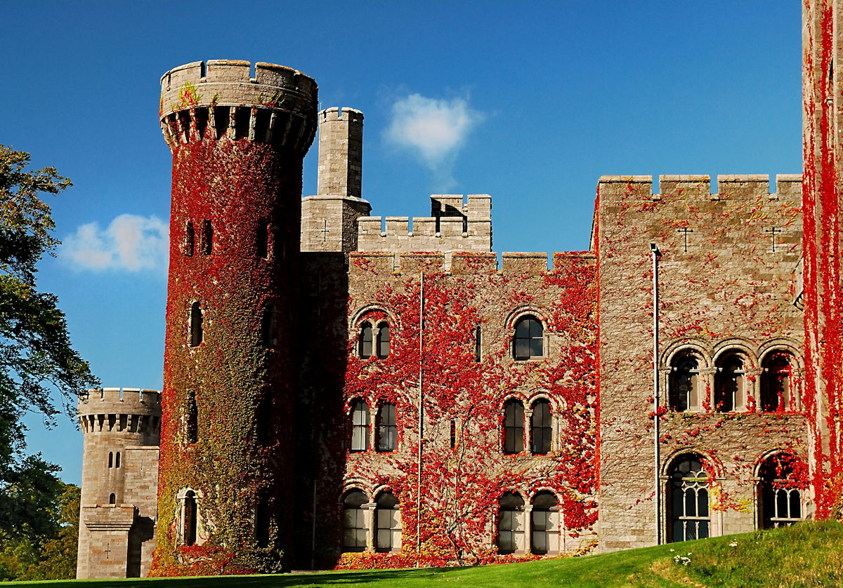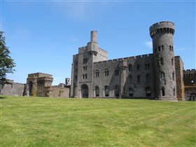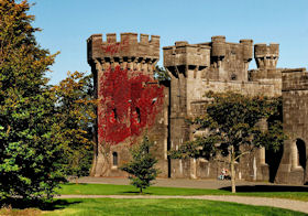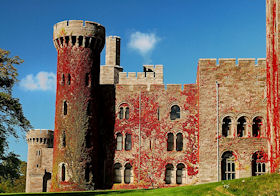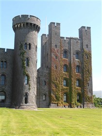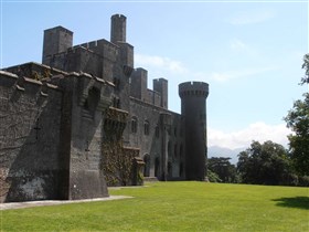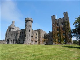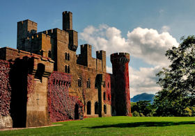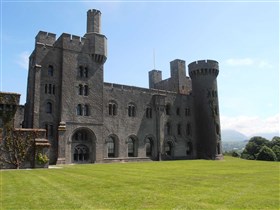 The present house, built in the form of a vast Norman castle, was constructed to the design of Thomas Hopper for George Hay Dawkins-Pennant between 1820 and 1837. It has been very little altered since. The original house on the site was a medieval manor house of C14 origin, for which a licence to crenellate was given at an unknown date between 1410 and 1431. This house survived until c1782 when it was remodelled in castellated Gothick style, replete with yellow mathematical tiles, by Samuel Wyatt for Richard Pennant. (Listed Building Report)