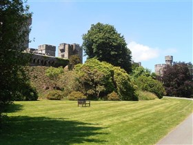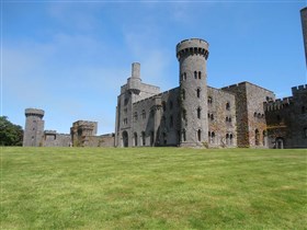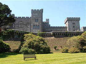 Set in landscaped grounds of Penrhyn Park in elevated position surrounded by open lawns and some trees at end of long winding drive from Grand Lodge; dominates the surrounding countryside.