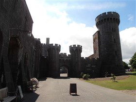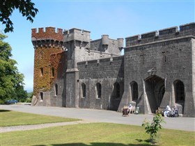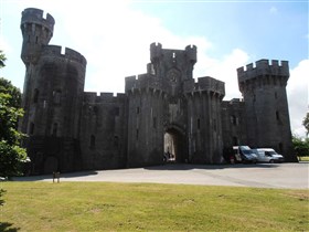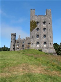 Penrhyn Castle, one of the most enormous houses in Britain, is an extensive fantasy castle by Thomas Hopper, largely built from the early 1820s to 1837 for George Hay Dawkins-Pennant. The castle climaxes in a vast Norman hall and an overbearing great tower, modelled on Heddingham Castle. A mansion is recorded here in the fourteenth century and licence to crenellate was obtained in the period 1410-1431. This house was swept away in about 1782 when a castellated Gothick style house was built. The hall of the 1782 house survives as the present drawing room. (Coflein ref. Haslam, Orbach and Voelcker)