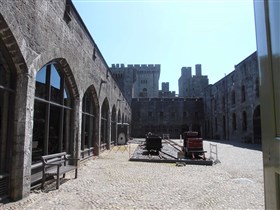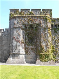 Some remains of the medieval house remain in Thomas Hopper's extravaganza at Penrhyn Castle, particularly a cellar. A fourteenth-century dating has been suggested for this and it has also been suggested that the main Tudor line had a house here.(RCAHMW; Hague, 1959) On the other hand, we have the word of Gwilym's own son that his father built 'the manor of the Penrhyn'. Gwilym certainly lived there for part of the time; in a poem addressed to him by Rhys Goch Eryri, the poet compares the house with Caemarfon Castle. The castle was built by a conqueror to keep men down and to break their hearts; Gwilym's whitewashed tower, built of oak, is far superior to the Eagle Tower. Penrhyn is a place of generosity and hospitality and is more like the court of God than one of man; he wishes a long life to Gwilym and Joan. Obviously there is an element of poetic hyperbole here, but Gwilym's Penrhyn certainly appears to have been a substantial house, apparently built of timber and whitewashed like most contemporary buildings. The move to Penrhyn and the building of the house cannot be dated with any accuracy, but Gwilym began to buy up lands in Cororion in 1415, which suggests a terminus post quem. (Carr p