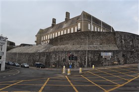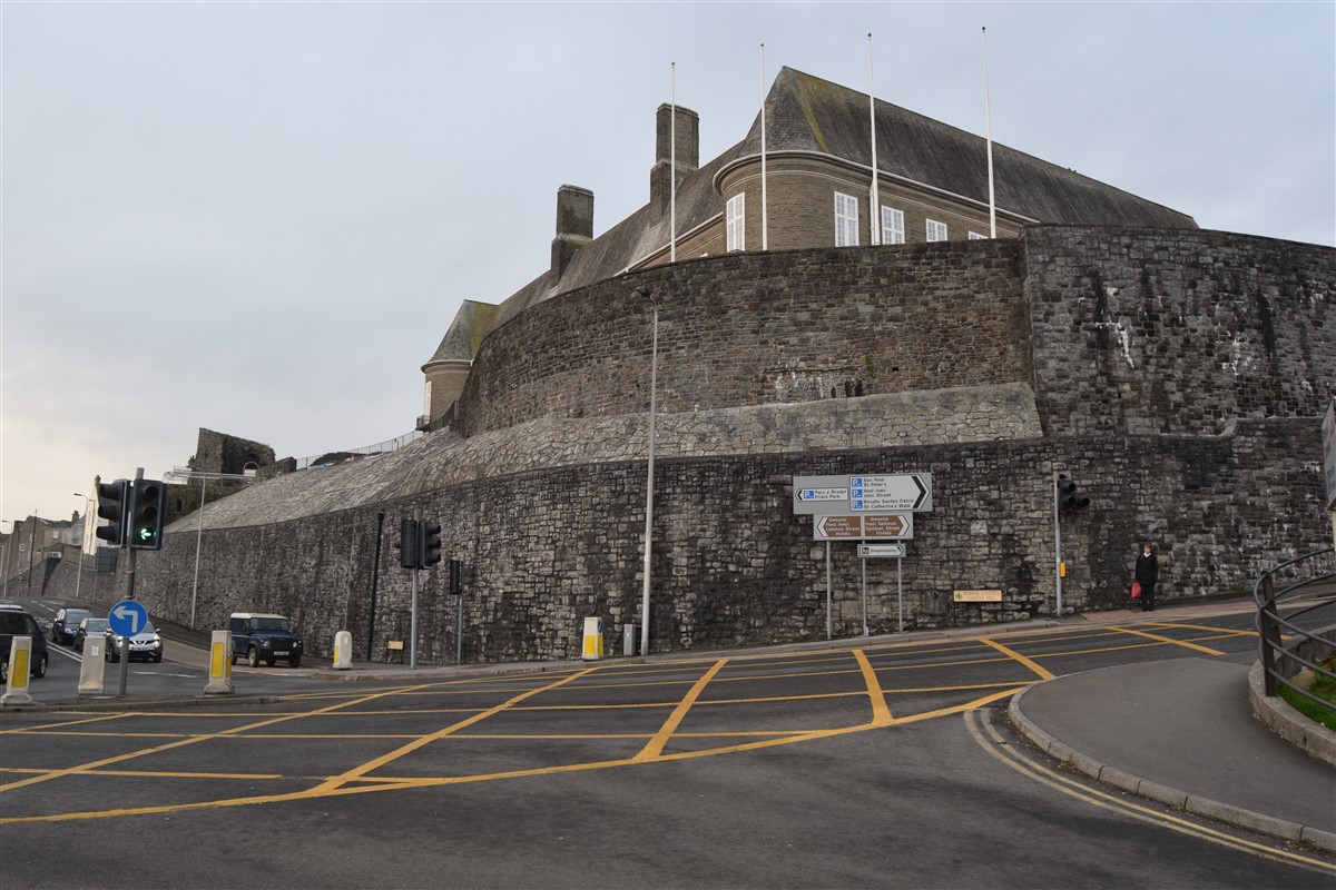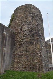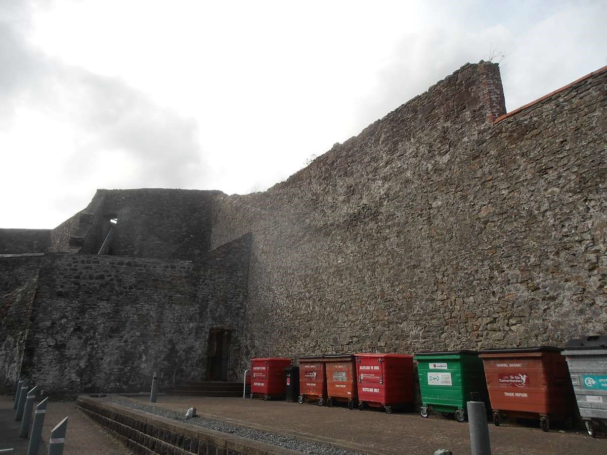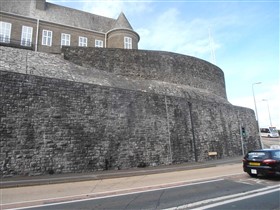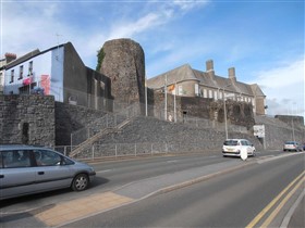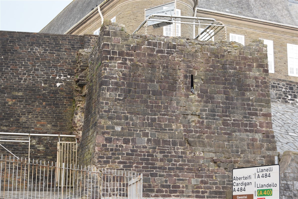 Carmarthen Castle is a large and important castle but it has a disputed foundation, originating in 1109 or the late 13th century; remains of the high medieval castle, including a shell keep, gatehouse and two towers, are obscured by modern buildings, notably County Hall. The site was used as the county gaol from the eighteenth century (nprn 100074). See Ludlow 2003 (Carm. Ant. 39), 147-151. J.Wiles, RCAHMW, 15.09.2004. 2. Repairs and additions to castle made throughout the thirteenth to fifteenth centuries. The gaol, designed by John Nash, was located on the east side, within the curtain wall. Extant remains include the motte, donjon with towers, gatehouse, and southwest drum tower. (Source: Cadw listed buildings database) J.Hill, RCAHMW, 04.09.2003. 3
