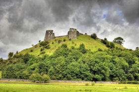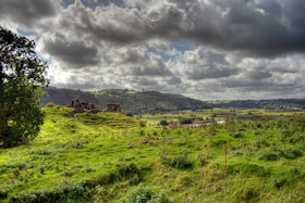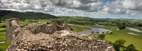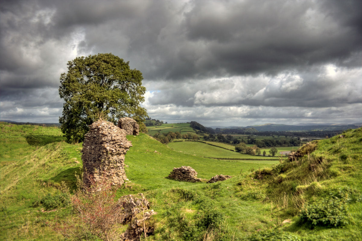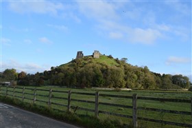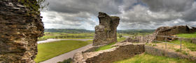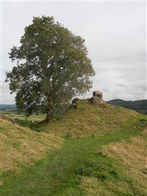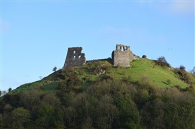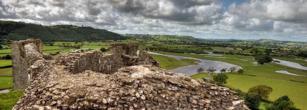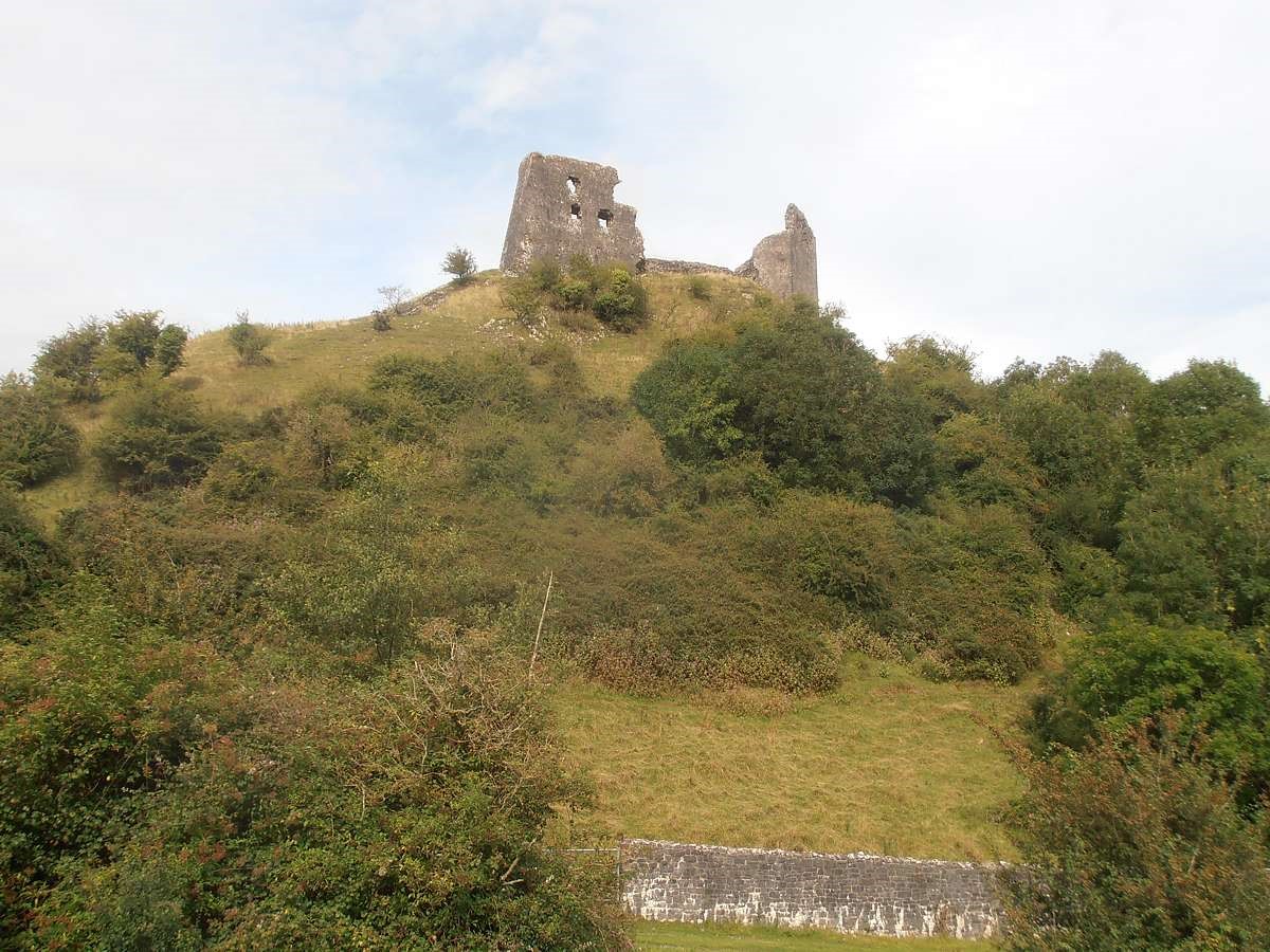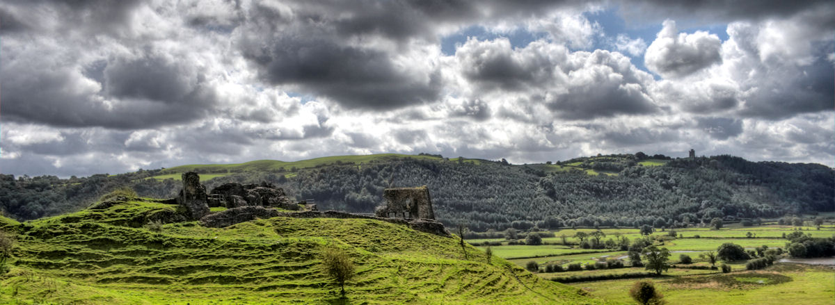 The shattered ruins of a medieval castle crown the ultimate summit of a dramatically isolated and abrupt hill rising from the Tywi floodplain. The castle was founded by a local Welsh prince in the second quarter of the thirteenth century. It was twice expanded before, in 1287, it was captured for the English crown after a desperate and famous siege. A walled borough was now added on the lower summit of the hill (see NPRN 109584) and the castle itself was modified and repaired throughout the following century. The castle was decommissioned in the early fifteenth century and decayed thereafter. It has recently been excavated and the remains are consolidated for public display.