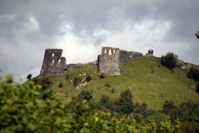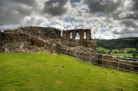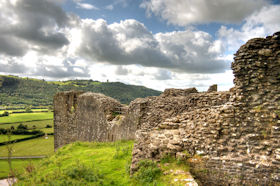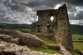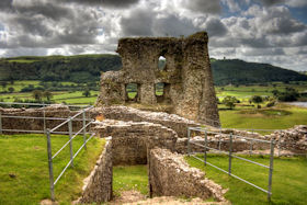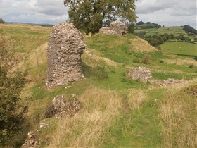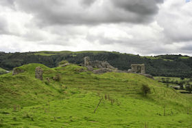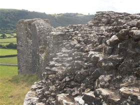 The castle passed to Maredudd ap Rhys in 1233, who built a second hall at right angles to the original, and added a second ward on the NE side, now known as the middle ward. During this period Maredudd made Dryslwyn the headquarters from where he ruled his now divided lands in Ystrad Tywi. After Dryslwyn was inherited in 1271 by Rhys ap Maredudd it underwent further extension, perhaps after the war of 1282-3 when Edward I rewarded Rhys'''' loyalty to the English crown with further territory. Within the original, inner ward, an apartment block and chapel were added and the gatehouse was rebuilt. An outer ward was also added. A substantial settlement had by this time grown up on the N side of the castle, which was itself the largest castle in Wales built by a Welsh lord. In 1287 Rhys ap Maredudd revolted against the administration of crown lands in south-west Wales and after a three-week siege the castle was taken by Earl Edmund of Cornwall, the king''''s cousin. Rhys fled but was captured and executed in 1292. Thereafter the castle was repaired and was in the custody of a constable of the crown. During the C14 it lost its importance as Carmarthen emerged as the major centre of authority in the region and it was increasingly neglected. Dryslwyn was captured in 1403 by Owain Glyndwr, and remained in rebel hands for some 3 years before the crown''s authority was re-established. Dryslwyn appears to have been subsequently abandoned and was probably largely demolished to prevent its future use by hostile forces.
