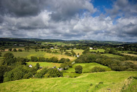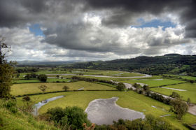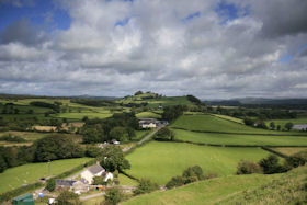 On high ground overlooking the Tywi Valley, to the E of the B4297 and on the N side of the river.