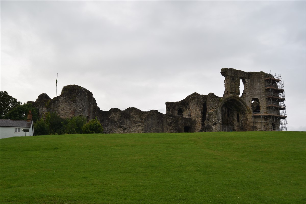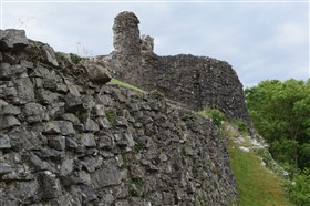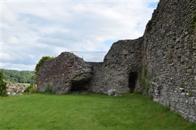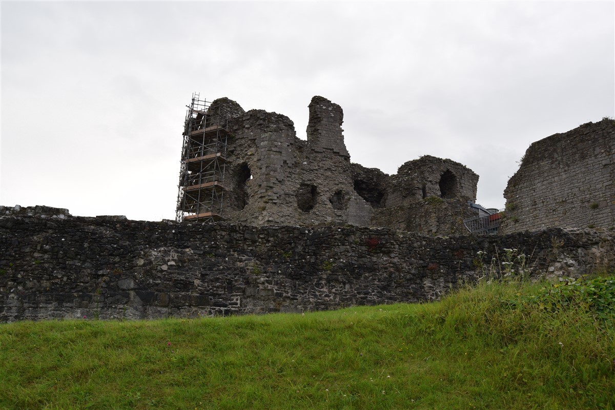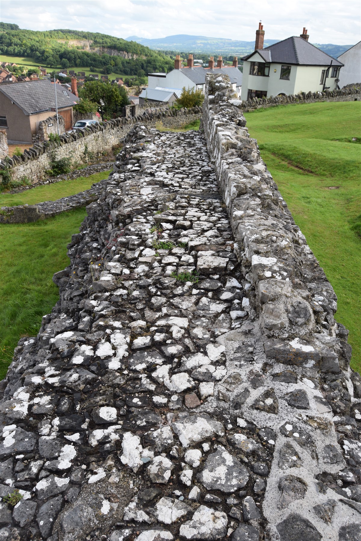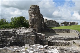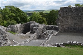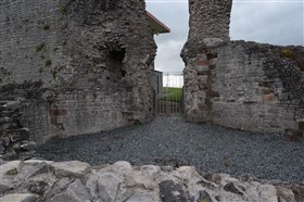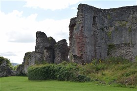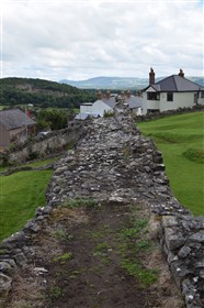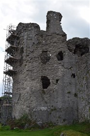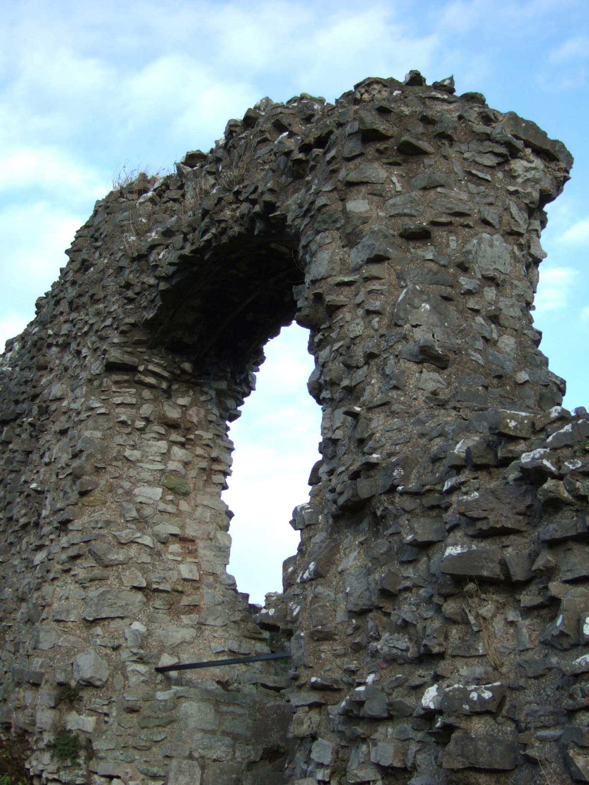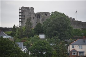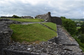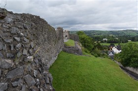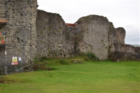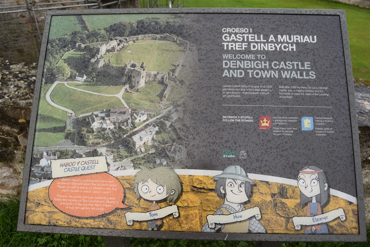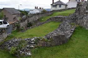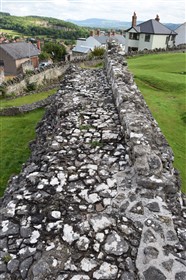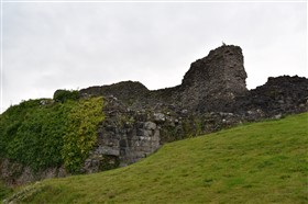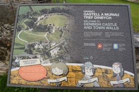 Building for Denbigh Castle began in October 1282 after Denbigh was granted to Henry de Lacy, earl of Lincoln. At the outset, the hilltop was enclosed with stout curtain walls and half-round towers to protect the town. Further developments to the castle were restricted by the Welsh Revolt in 1294 and lead to the construction of a much higher curtain wall with polygonal towers and a massive three-towered gatehouse. The castle and its defences experienced a number of tests most notably an attack by Owain Glyn Dwr in 1400, was burned down in 1468. The castle was also affected by the War of the Roses between 1455 and 1485. Robert Dudley, who later became Lord Leicester repaired the residential parts of the castle and also erected a large new church. Denbigh Castle was held for the King by Colonel William Salesbury during the Civil War between 1642 and 1648, and after inevitable defeat, later in 1660 the castle was deliberately slighted and rendered useless. The castle was then left to ruin. Source: Butler, L.A.S. 2007. Denbigh Castle: CADW (Coflein)