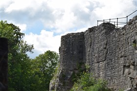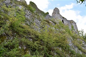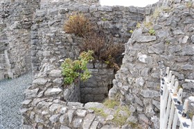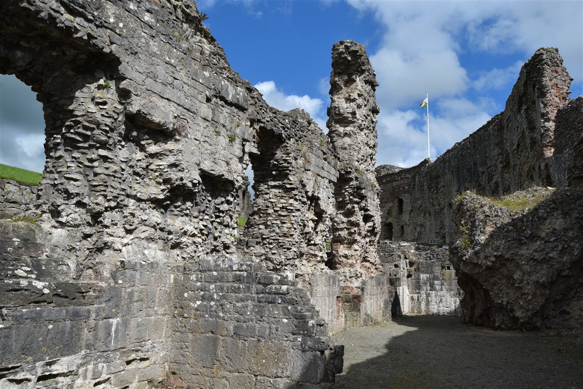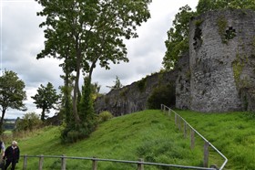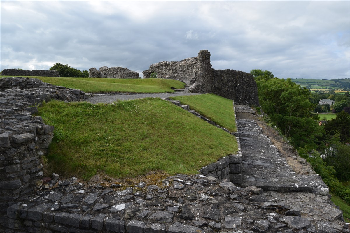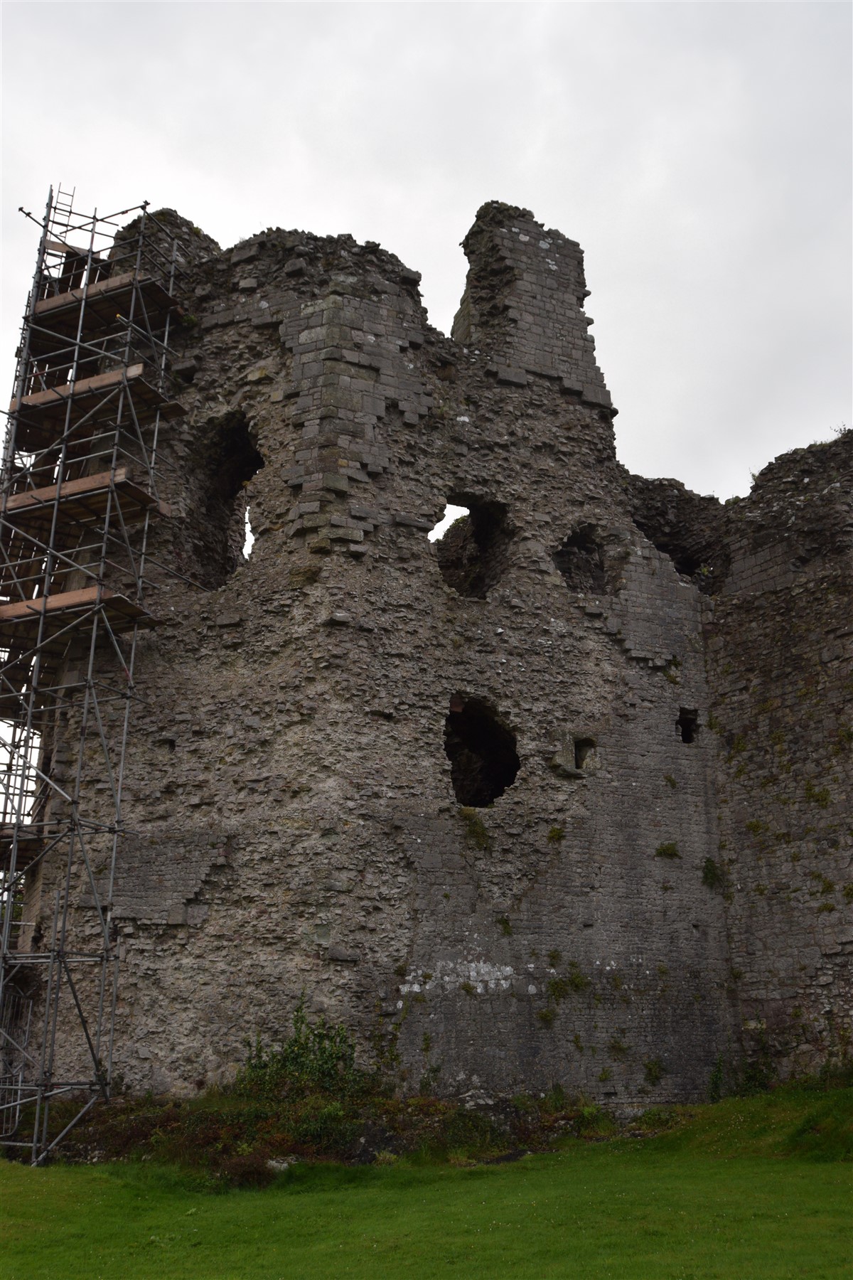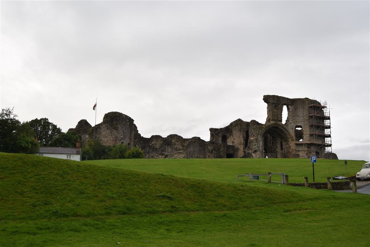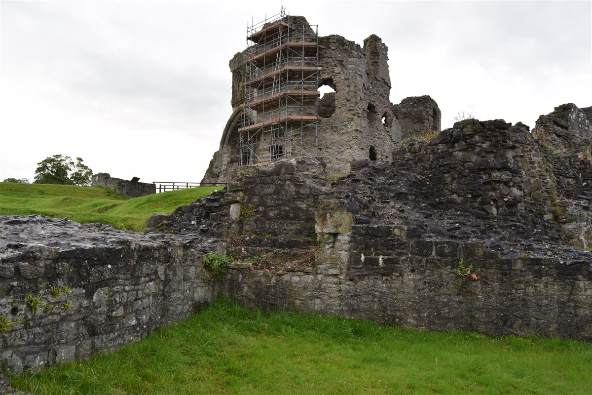 Building for Denbigh Castle began in October 1282 after Denbigh was granted to Henry de Lacy, earl of Lincoln. At the outset, the hilltop was enclosed with stout curtain walls and half-round towers to protect the town. Further developments to the castle were restricted by the Welsh Revolt in 1294 and lead to the construction of a much higher curtain wall with polygonal towers and a massive three-towered gatehouse. The castle and its defences experienced a number of tests most notably an attack by Owain Glyn Dwr in 1400, was burned down in 1468. The castle was also affected by the War of the Roses between 1455 and 1485. Robert Dudley, who later became Lord Leicester repaired the residential parts of the castle and also erected a large new church. Denbigh Castle was held for the King by Colonel William Salesbury during the Civil War between 1642 and 1648, and after inevitable defeat, later in 1660 the castle was deliberately slighted and rendered useless. The castle was then left to ruin. Source: Butler, L.A.S. 2007. Denbigh Castle: CADW (Coflein)