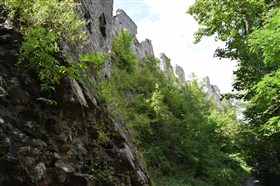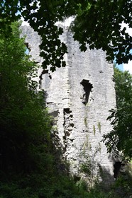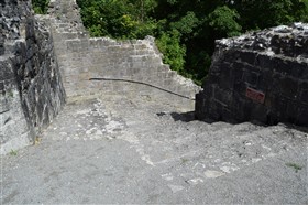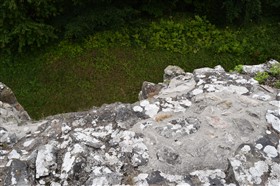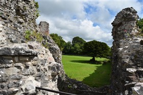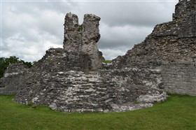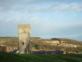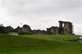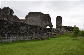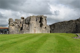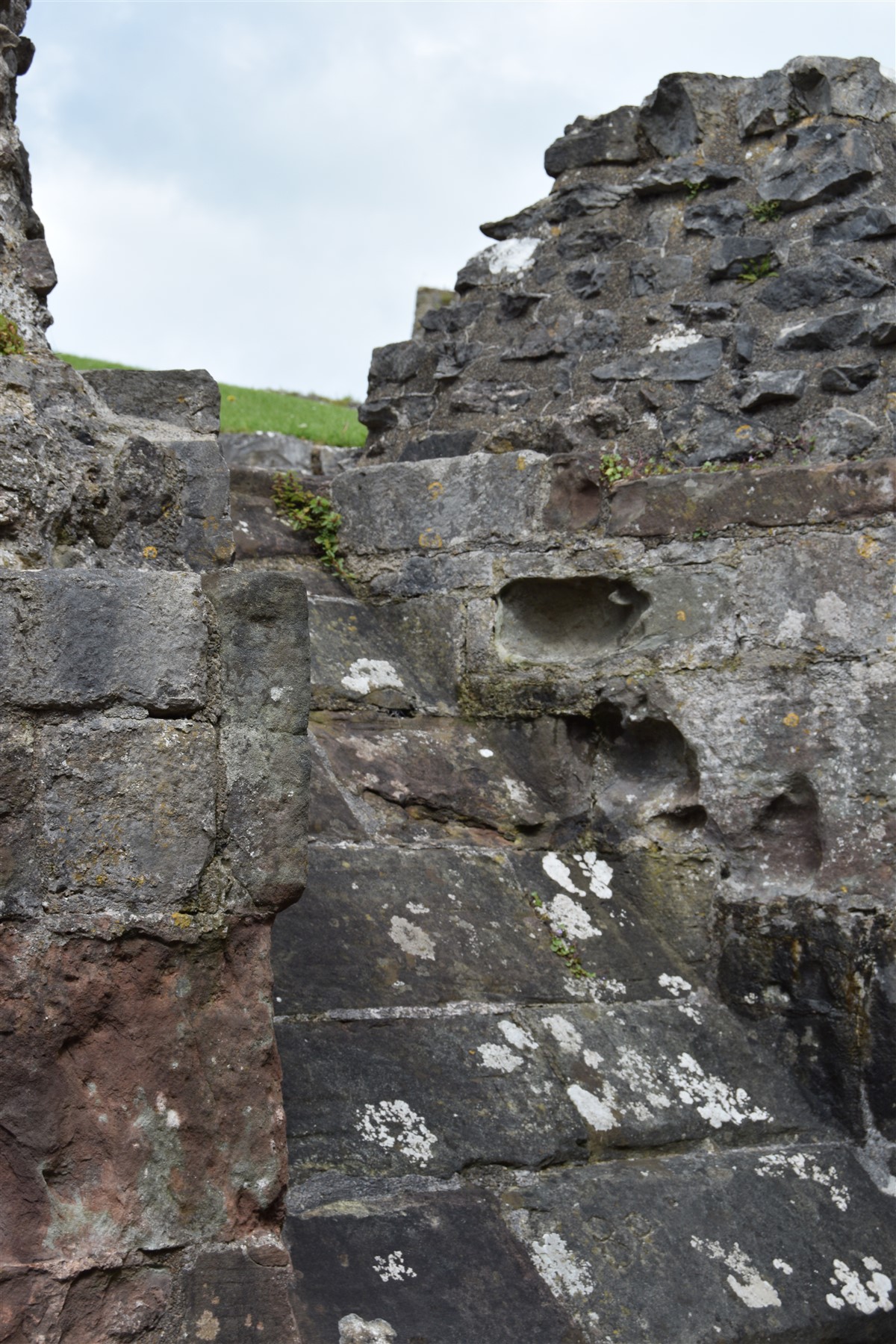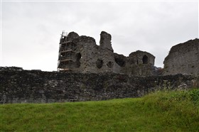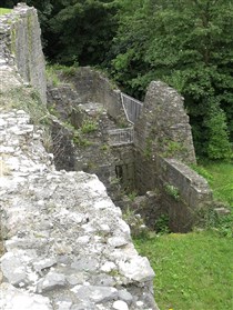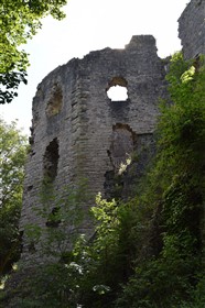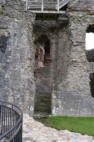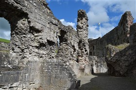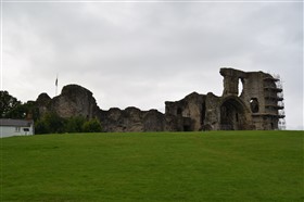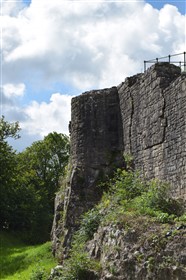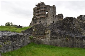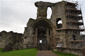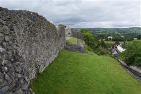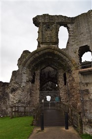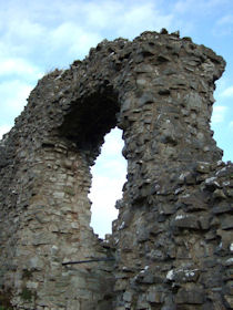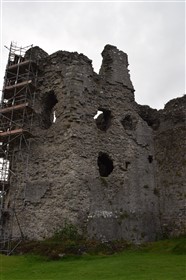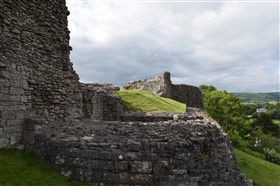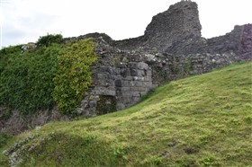 Denbigh castle was built by Henry de Lacy, Earl of Lincoln as part of a borough-town foundation under license from King Edward Ist. Begun in 1282, it is likely that the first phase, which enclosed the southern and western sides of the castle and continued to define the boundary of the associated town, was complete by 1294. In around 1295 the N and W sides were constructed, thereby dividing the castle proper off from the town; this second phase is likely to have been completed by 1311. This later work, which includes the extraordinary gatehouse and a series of complex mantlets with postern gate and western sallyport, is regarded as one of the most accomplished pieces of contemporary military architecture in Wales and is almost certainly the work of Master James of St. George, Edward Ist's famous Savoyard master mason. Indeed, the sophistication of the gatehouse block exceeds anything attempted at Caernarvon, Conwy or Harlech. In 1294, when the castle was still under construction, it fell to Madog ap Llewelyn in a widespread Welsh uprising known as Madog's Rebellion. This was clearly the inspiration for the more sophisticated building programme (which included the heightening of the existing walls) implemented in the following year. Earl Henry's son and heir, Edmund de Lacy, is said to have fallen to his death in the Denbigh castle well in 1308; the earl himself died in 1311. During the Glyndwr rebellion the castle was held for the crown and was not taken. During the Wars of the Roses, however, the castle was a major Yorkist centre. It was consequently subjected to frequent harrying by Lancastrian forces under Jasper Tudor, Earl of Pembroke, who in 1468, together with Dafydd ap Siencyn (the 'Welsh Robin Hood'), launched a failed assault on the castle, though managed to burn the town and suburbs. During the Civil War the castle and old town were garrisoned and defended for the king by Colonel William Salesbury, a redoubtable commander nick-named 'Hen Hosanau Gleision ('Old blue stockings'). The famous siege of Denbigh under the parliamentarian generals Middleton and Mytton lasted for some nine months, during which time 'brave Denbigh' valiantly held out to much royalist acclaim (a contemporary poem describes the 'palace of Dame Loyalltie...surrounded closely with a narrow sea of black rebellion'). King Charles had visited Salesbury at Denbigh in September 1645, staying for three days in what became known as the King's Tower. As a consequence of this, Salesbury resolved to hold the castle at all costs with his five-hundred-strong garrison. When Denbigh finally capitulated on 26th October 1646 (on very favourable terms), it was only after the king had personally ordered Salesbury to do so; it was the last major main-land fortress in Britain to fall. Following the surrender the castle was used as a prison for captured royalists, during which time it was twice attacked by forces under Major Dolben and Captain Chambres, who attempted to take back the fortress and release the captives. The castle was finally slighted in 1660 and was subsequently used as an (informal) quarry.