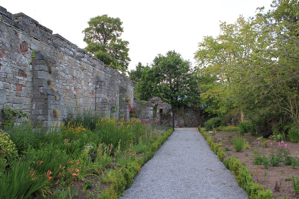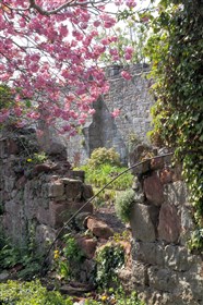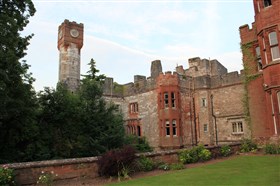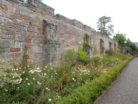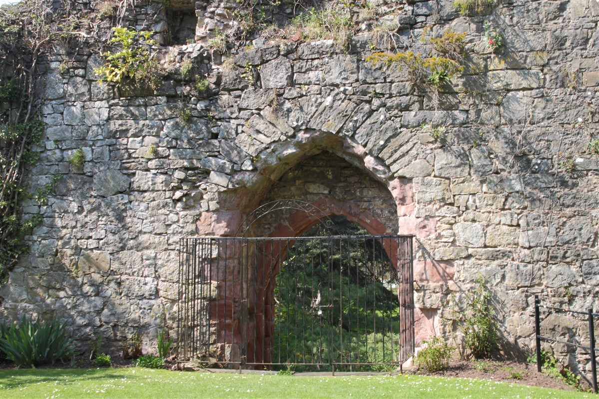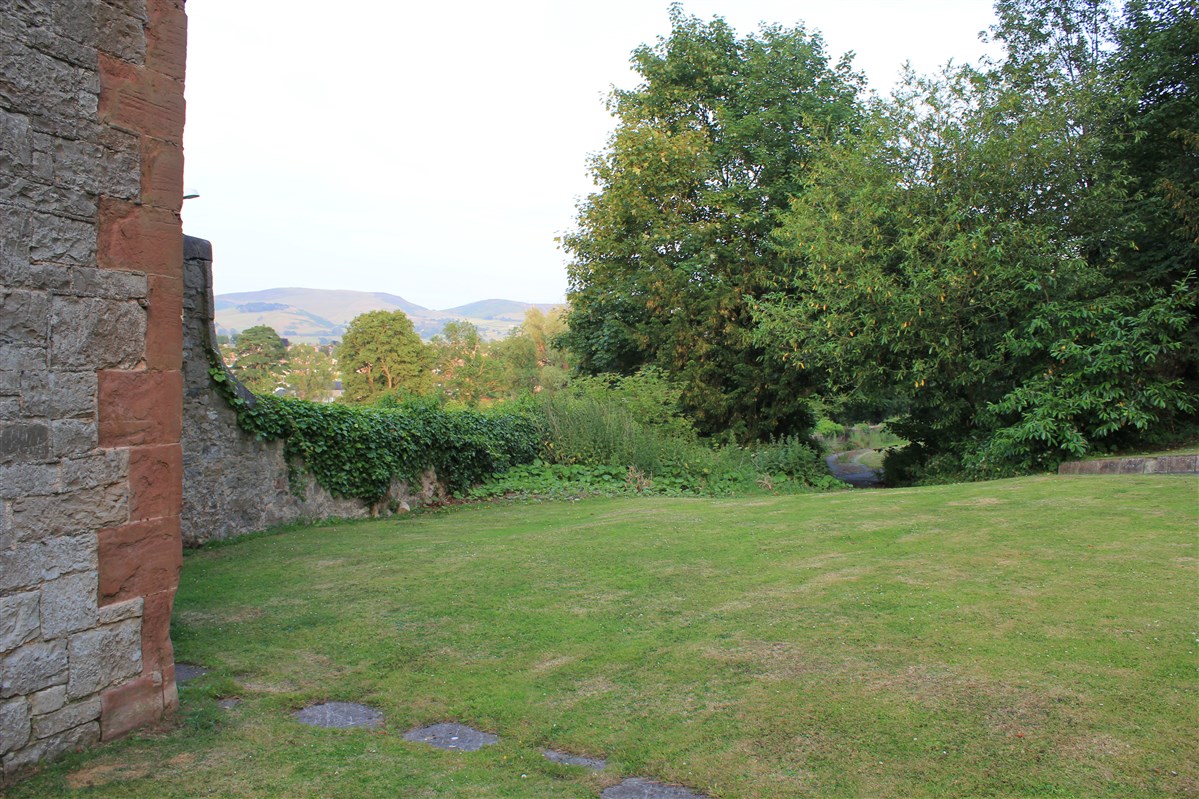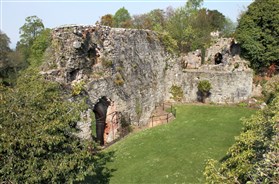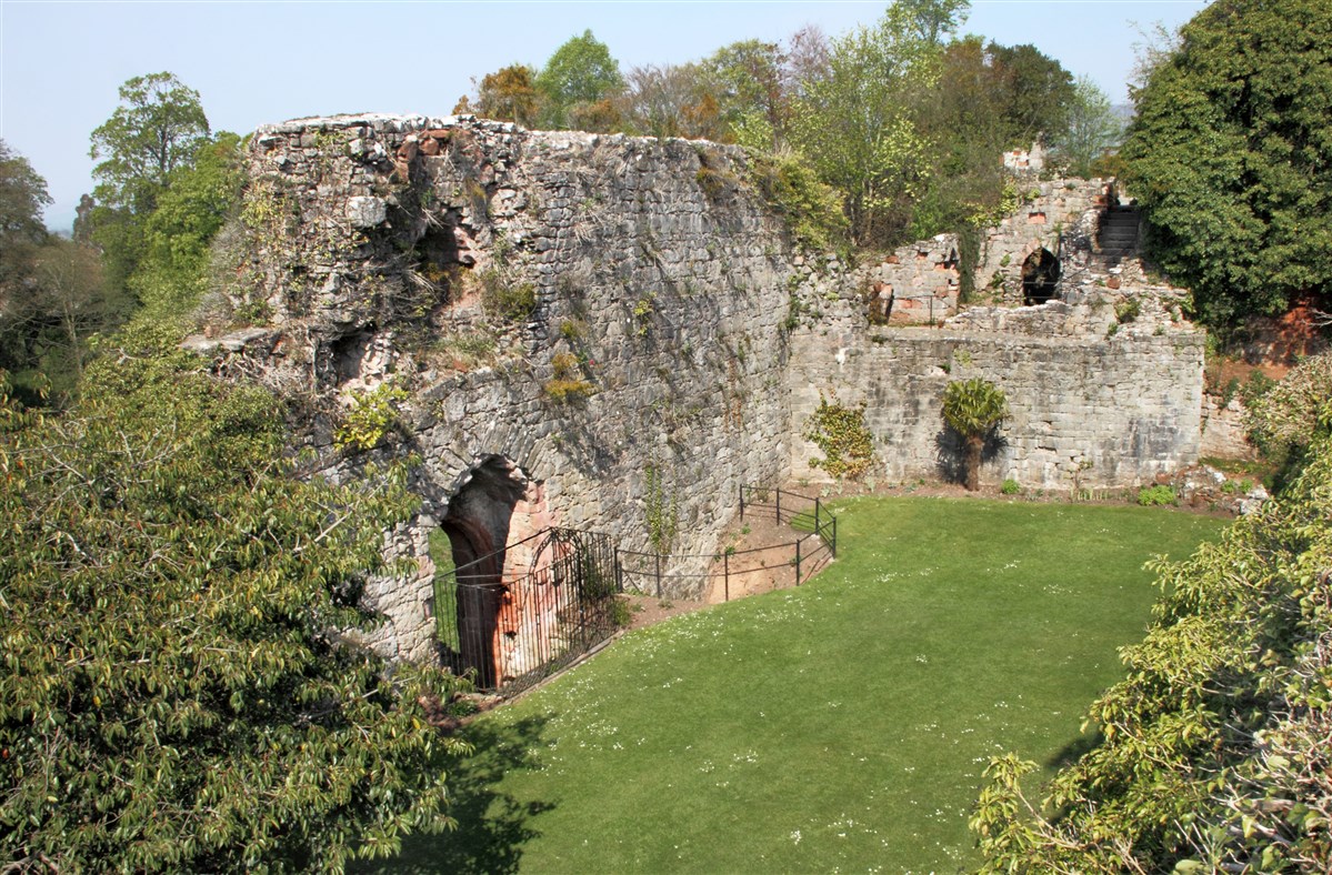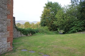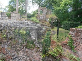 Started in 1277 by Edward I, as part of a Royal building programme of border castles, and contemporary with those at Flint and Rhuddlan. Ruthin became a Marcher Lordship in 1282 under Reginald de Grey. It was attacked in 1400 during the uprising by Owain Glyndwr. The castle was ruined during the Civil War, some of the stone re-used elsewhere in the town; it was purchased by Sir Richard Myddelton in the C17. A house, now Ruthin Castle Hotel, was built over much of the lower bailey from 1826. The upper bailey is now gardens, some of the ruins embellished in gothic style in the C19.