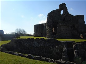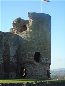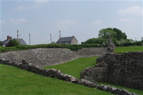 Begun in 1277, this was the second of King Edward I's great Welsh fortifications. A protected river dock forms one side of the defences of this concentrically planned castle, dominated by a distinctive diamond-shaped inner ward. The castle was constructed between 1277-82 and at the same time the river was straightened and dredged to improve navigation. The castle plan is concentric based on a quadrilateral, towered inner court, c.43m square, with twin-tower gatehouses on opposite corners, within a roughly concentric outer enclosure, the whole bounded by a broad stone-revetted moat, except where it rests on the river bank on the SW. The outer ward, which is flanked by small square towers and turrets, is octagonal in shape except where it borders the river. Here it extends down the slope to enclose a watergate and dock for ships. The walls of the outer ward have been destroyed but the moat can still be traced on the side away from the river. (Derived from Jeff Spencer and Coflein)