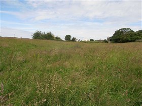 The portion of the earthwork SE of the public footpath and the hedge/fence on its SE side, is now a grassed extension of a Children's Play Area. Regular mowing has softened the profile considerably and the crests and toes of the banks are now difficult to define with any precision. A filled ditch, of recent origin, runs down the centre of the ancient one, whilst at about 11.0m and 15.0m SE of the NW boundary and parallel to it, the earthworks are crossed by two ridges, probably filled trenches of recent date.