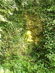 On a wooded spur in Castle Wood, immediately above the C20 development of Lettons Way and reached by footpath from there.