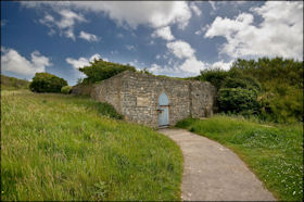 A medieval castle replaced by a now demolished Victorian mansion. King writes does not deserve the name castle but does write that possible medieval wall was found at SS886729. Close to an Iron Age Promontory Fort which is partly destroyed by coastal erosion. The 'manor place' recorded by Leland in the 1530's was evidently the building with a first-floor hall drawn by Francis Grose in 1775, and G.T. Clark thought that this incorporated part of of the C12 castle of the Butlers.