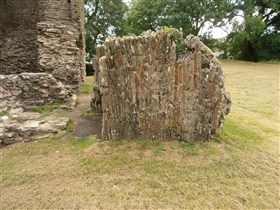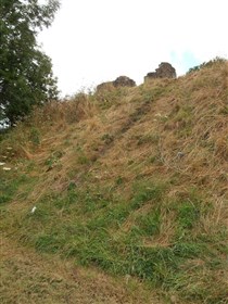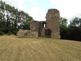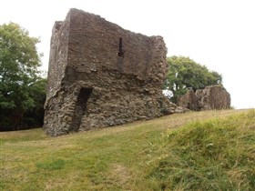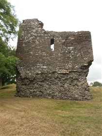 A small stone tower on the west side of the mound dates from the late 13th century or about 1300, the last building phase at the castle, perhaps during the lordships of William de Braose II and III. The presence of a fireplace in the north wall, and garderobe in the south, both on the first floor, indicates that the tower was residential. Its thick walls stand to first floor level, and there was originally another floor above. The whole of the south-east corner, complete with spiral stair, lies on its side, having fallen in the 1940s. Adjoining the tower to the south was the entrance gateway. The castle was made redundant by Edward I's pacification of Wales and fell into decline. (Scheduling Report)