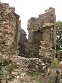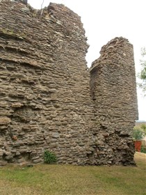 Loughor Castle lies within the eastern angle of a Roman military enclosure. The earliest medieval remains appear to be a primary ring bank constructed between 1106 and 1151. In the second half of the twelfth century the bank was extended inwards and two stone buildings were raised in the late twelfth to early thirteenth century. The main curtain wall was added in the later part of the thirteenth century. In the late thirteenth century the square tower that is the prominent survival on the site today was inserted into the curtain wall. (Coflein)