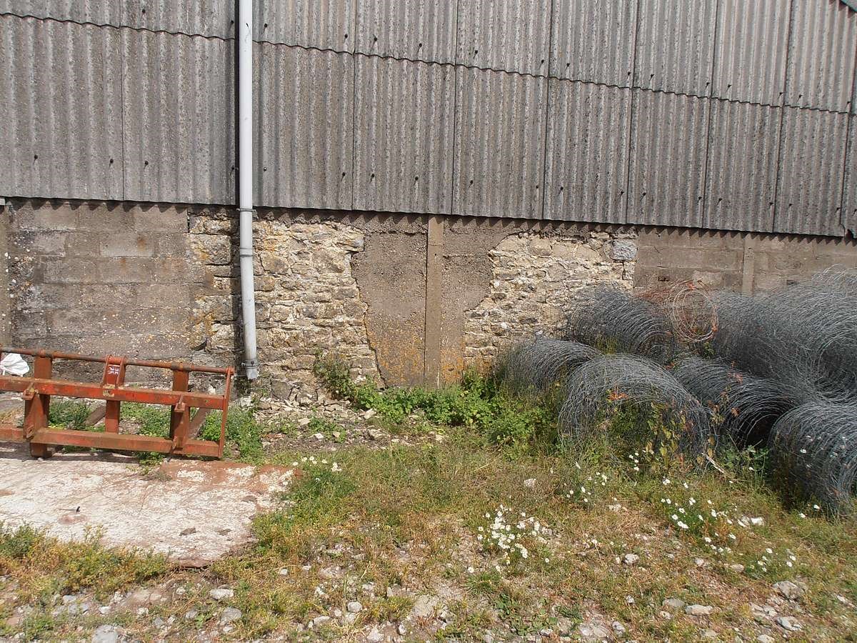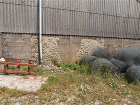 Damaged remains of a castle or fortified manor house at Marcross, partly incorporated into a free-standing outbuilding and a section of the farmyard wall of Village Farm. The wall and outbuilding were Listed in 1982, by which date associated earthworks identified from an aerial photograph sited to the south-west of the farm had been levelled and built over. (Glamorgan-Gwent Archaeological Trust HER)