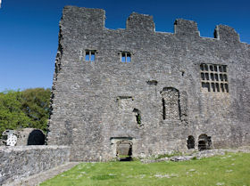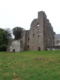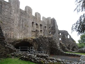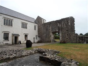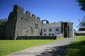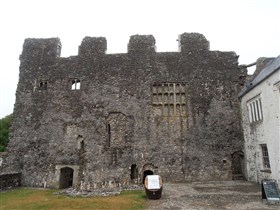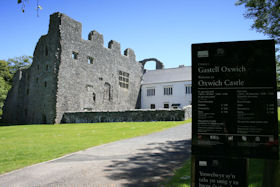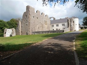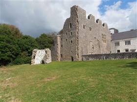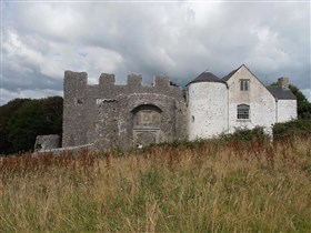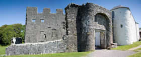 Castle in existence in C13, but much of the surviving fabric is from the C16. After C17, the NE range and tower fell into disrepair, although the SE range was in use as a farmhouse. Entrance to courtyard through SE gateway of Sutton stone with four-centred arch. Square, partly paved courtyard. NE range, constructed of limestone rubble with sandstone dressings, is the most impressive section, surviving almost to the eaves in places. This part has the base of a staircase with a vaulted kitchen to the left, and two undercroft vaults to the right. To SE of courtyard is a two-storey range, although this was once probably three storeys. (CADW listed buildings database) This large, mainly ruinous courtyard house stands on a headland that forms the west side of Oxwich Bay, Gower. The existing buildings, not earlier than the sixteenth century (but almost certainly occupying an older site), include two virtually independent residential blocks of differing dates, a mock military gateway to the courtyard, and the remains of a dovecot (NPRN 37628). The house is of particular interest as the early seat of the Mansel family, reflecting its rise to a leading position among the Glamorgan gentry. When the castle of Oxwich is specifically named in 1459 it was already held by Philip Mauncell, having come to the family by marriage to an heiress of the Penrice family who in turn acquired the manor of Oxwich in the thirteenth century. Much of the house that survives was built by Rice Mansel (1487-1559) the first of the family to achieve more than local significance. (RCAHMW, Glamorgan Inventory, vol.3(i) 'Greater Houses', p.63). (Coflein)