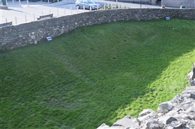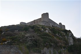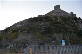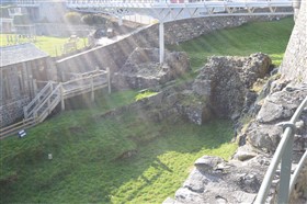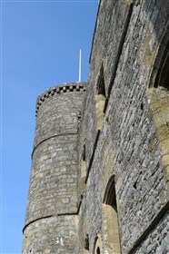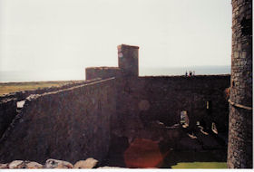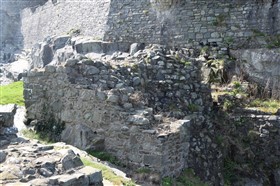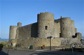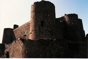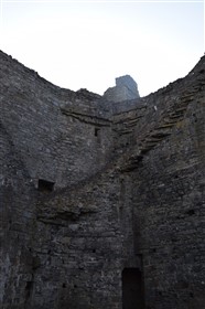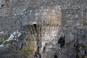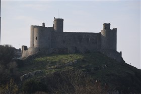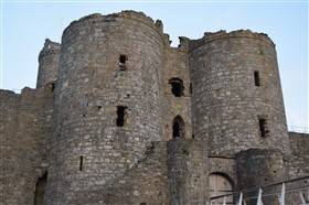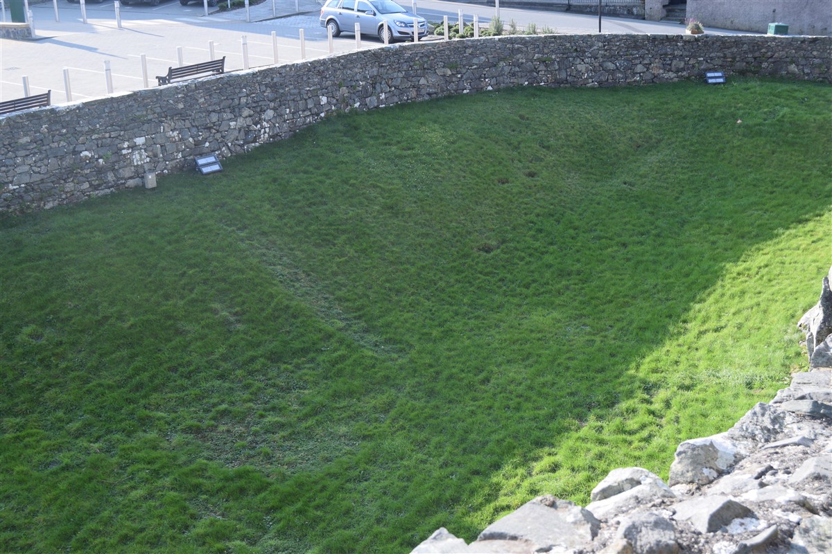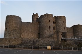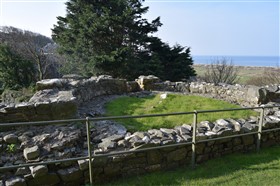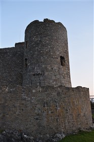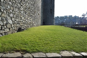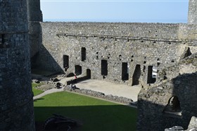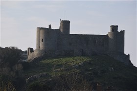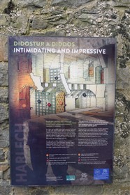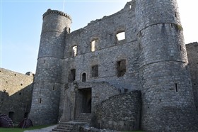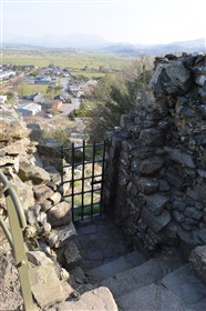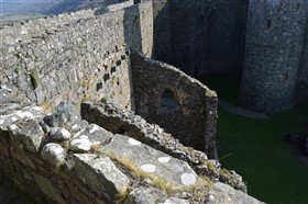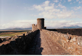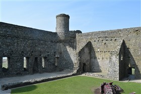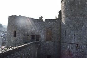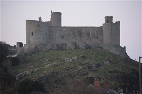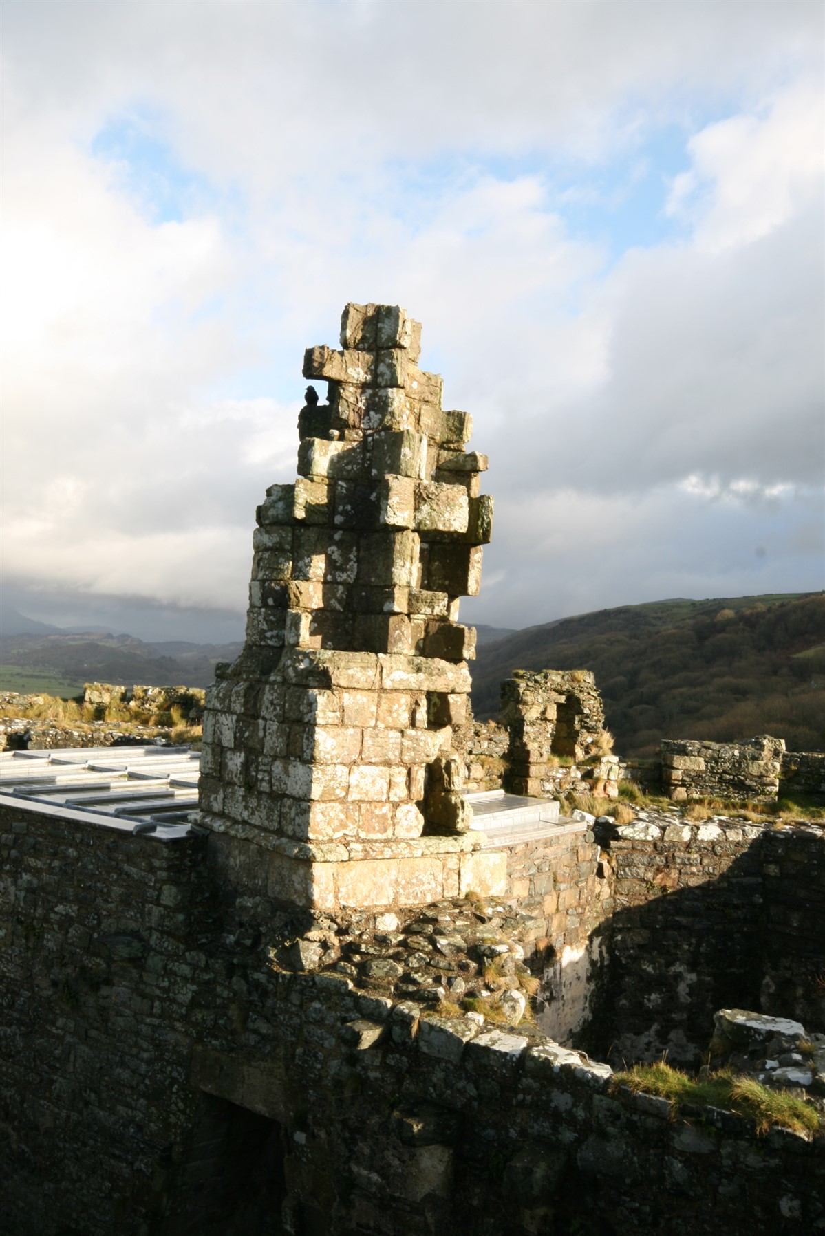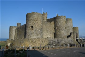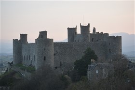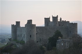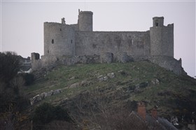 The earliest reference to Harlech is in the Mabinogi but no evidence has ever been found for an early court or llys on the site. Work was begun on the castle in 1283 to the design of Master James of St George and it was completed by 1289. The strong position of the castle on its rock overlooking the sea is hard to appreciate today as the sea has been replaced by the extensive sand dunes of Morfa Harlech. It was supplied by sea in 1294 having been entirely cut off by land during the revolt of Madoc ap Llywelyn and thus was able to survive. In 1904, however, it fell to Owain Glydwr who held the castle for over four years before it was finally regained by the future king Henry V. Unlike other of Edward I's castles, Harlech continued to play a role and was the last Lancastrian stronghold to fall in 1468. The Gatehouse was used for meetings of the court of assizes during the 16th century and the castle was held by the Royalists during the Civil War, being again the last castle to fall. The defences were ordered to be demolished in 1660 but the order was never carried out and the shell of the castle remains to this day. The castle is concentric in design with a narrow out ward protected by a rock cut dry moat and an almost square inner ward with massive gatehouse. The Great Hall and kitchens were set against the curtain wall in the inner ward as was a building referred to as the Ystumgwern Hall which is thought to have been transported to the castle from nearby Ystumgwern. An English borough was founded along with the castle at Harlech but no traces of walls or a regular grid of streets survive. (Gwynedd Archaeological Trust HER)